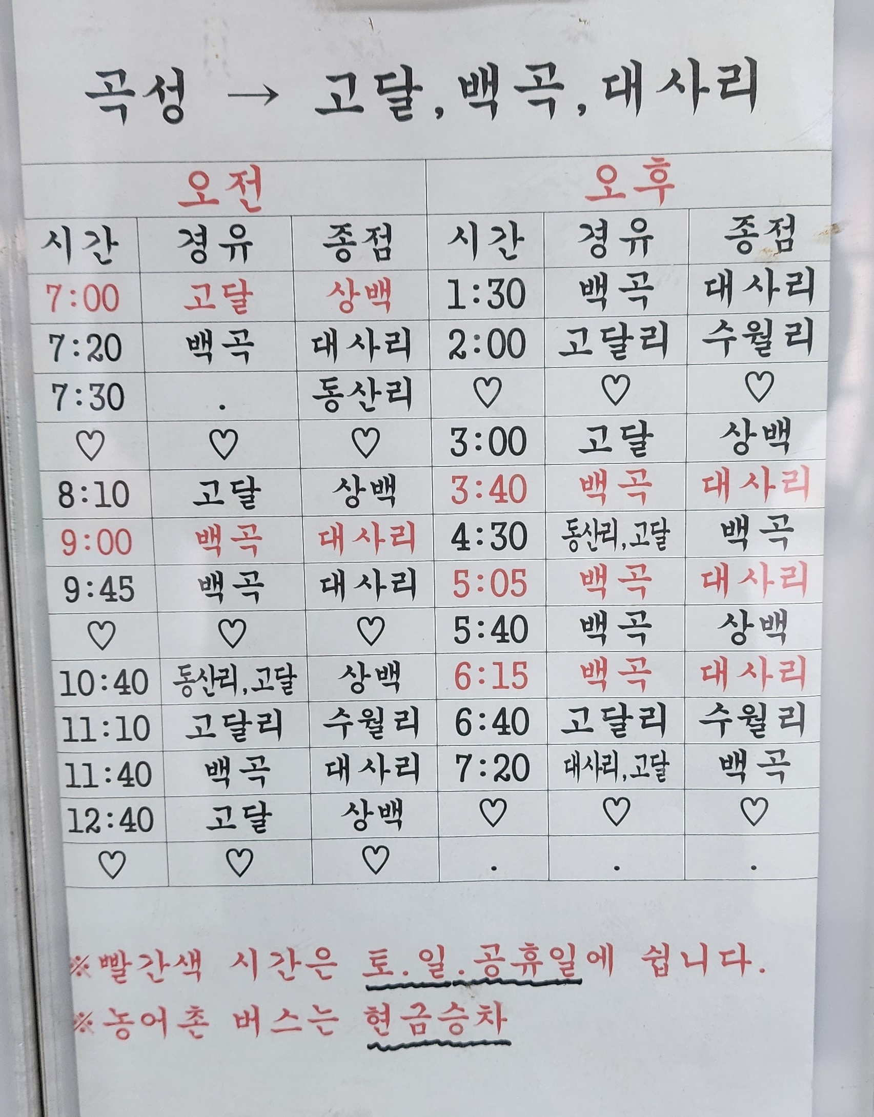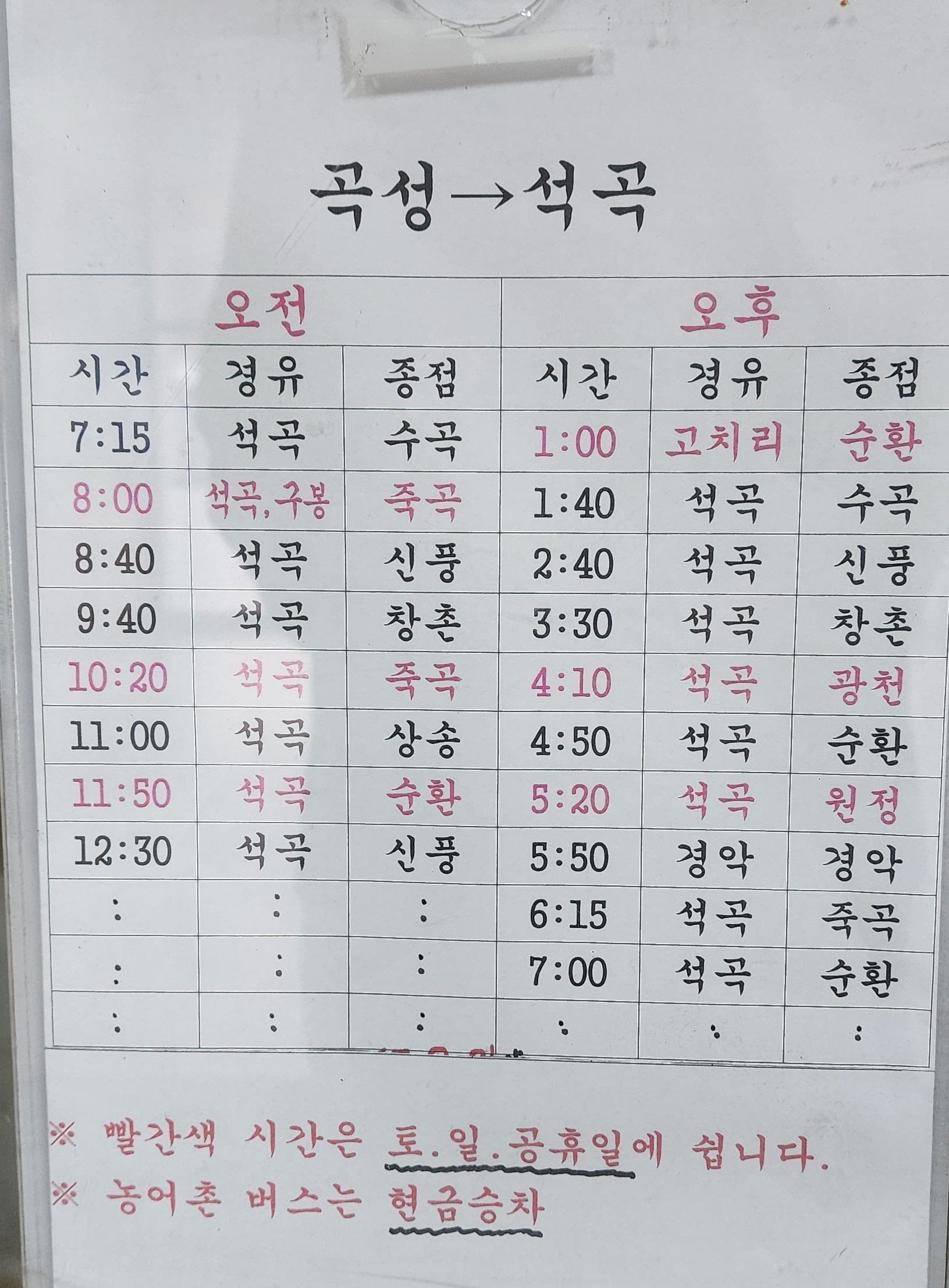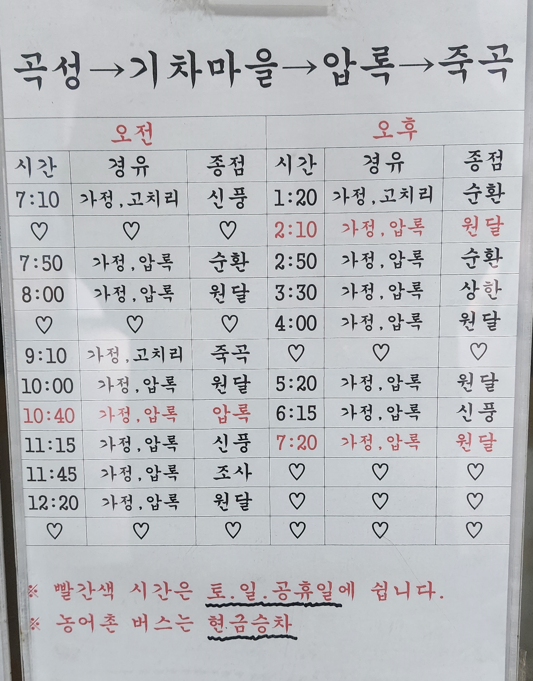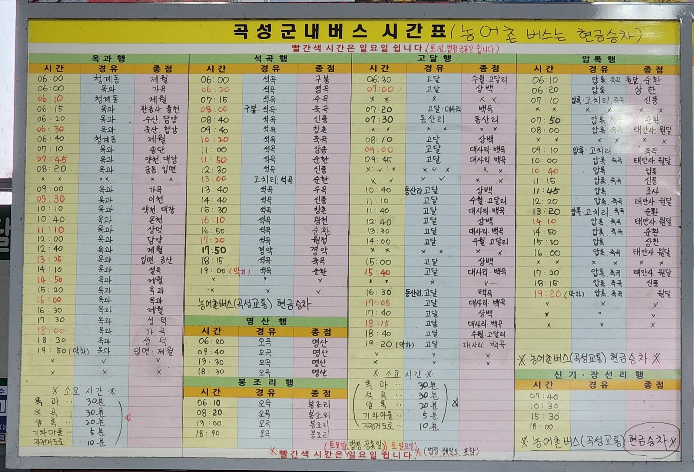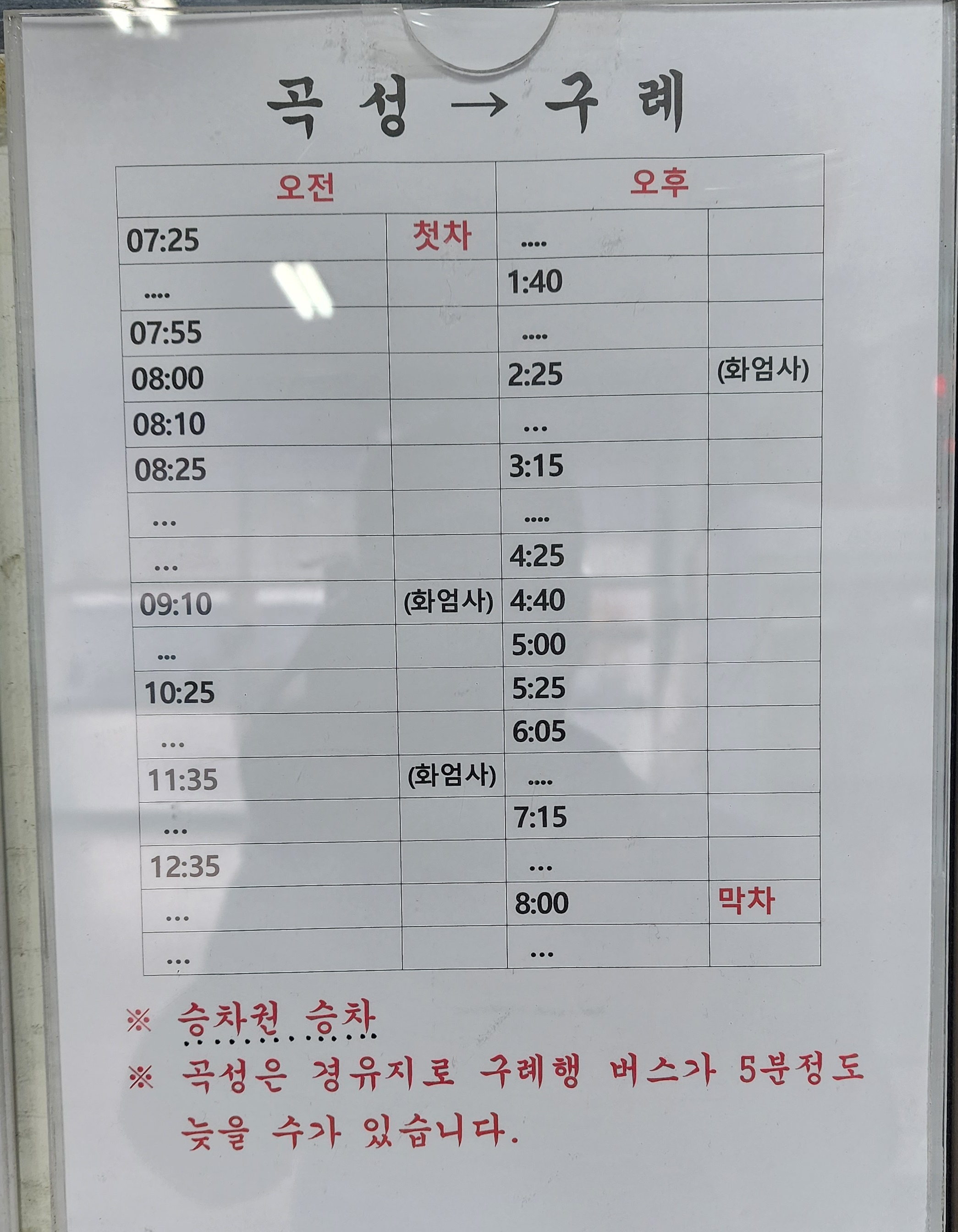 곡성군내 버스 시간표