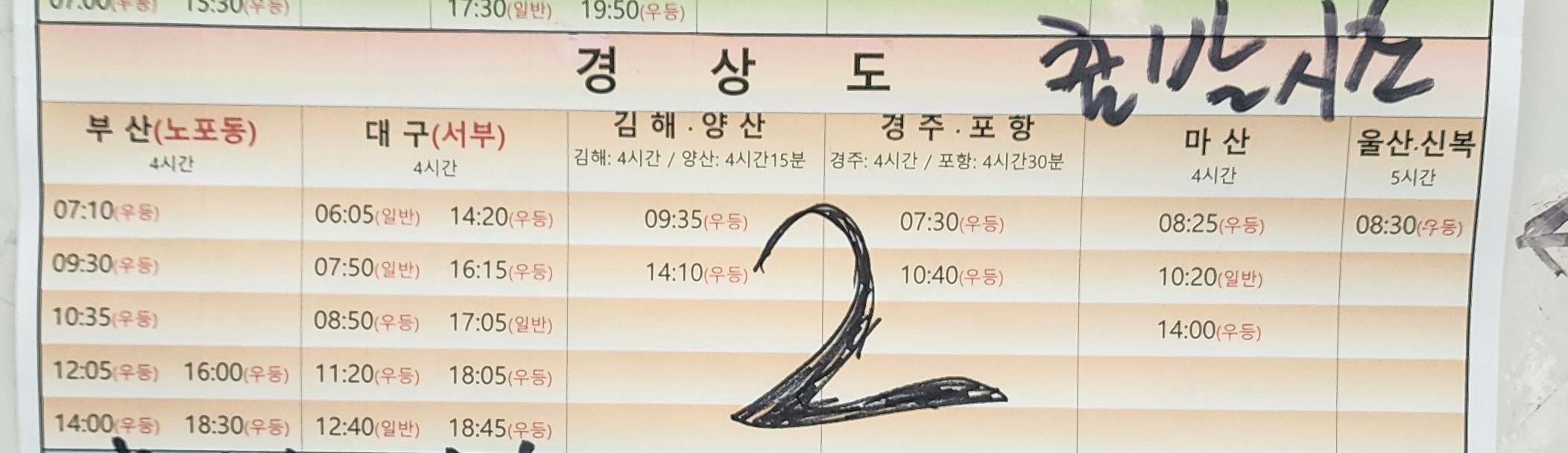 군산 출발 부산, 대구, 김해, 양산, 경주, 포항, 마산, 울산 방면.