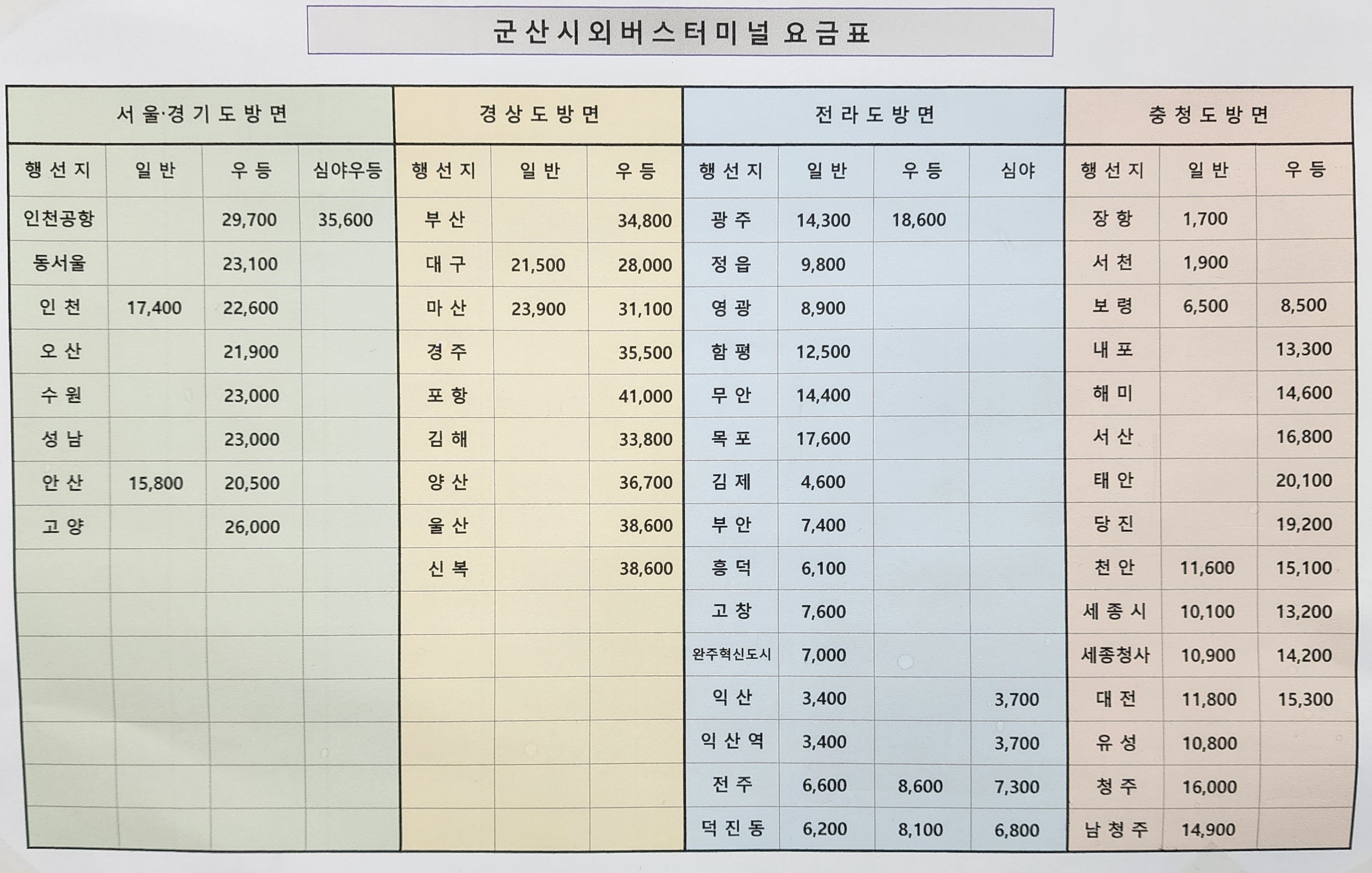 군산시외버스터미널 시간표 군산고속버스터미널 시간표