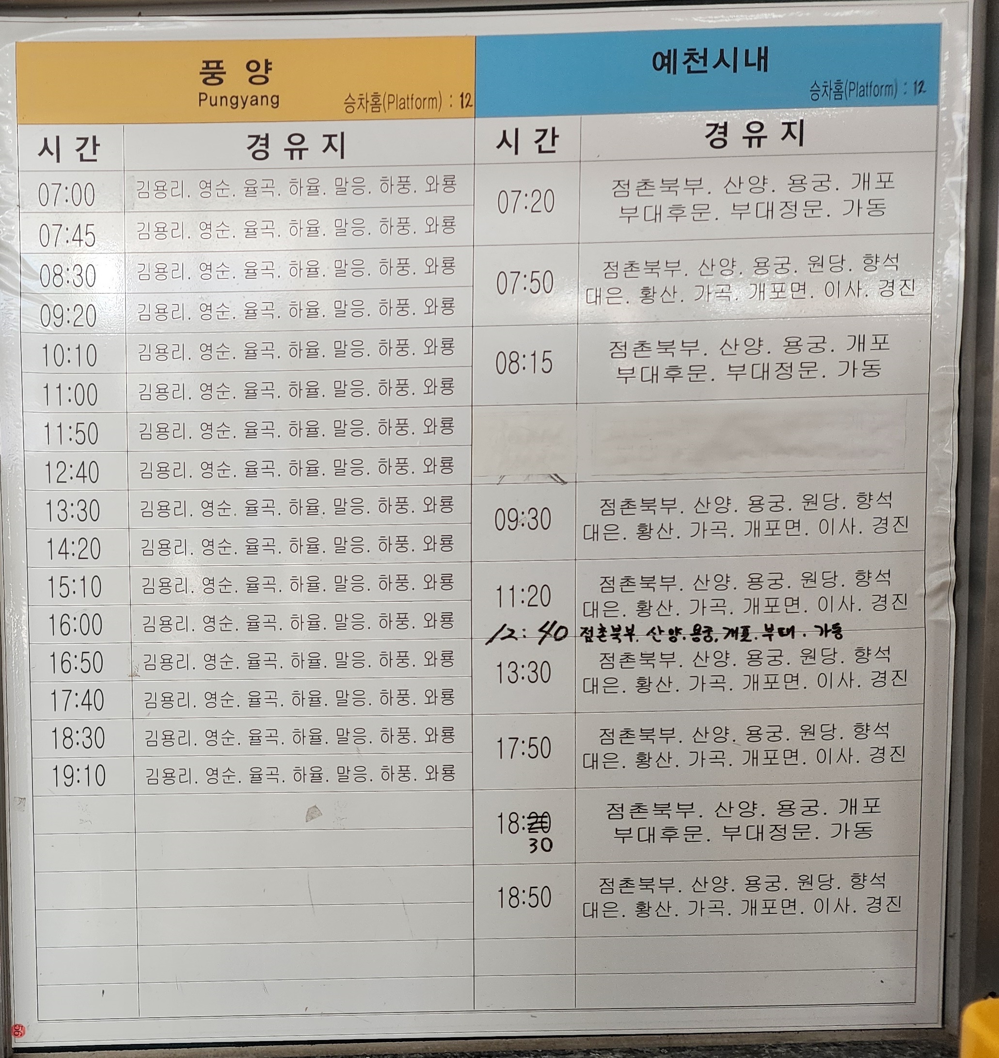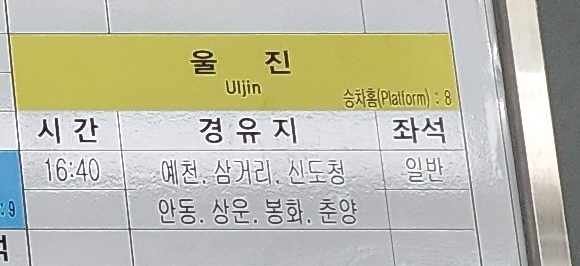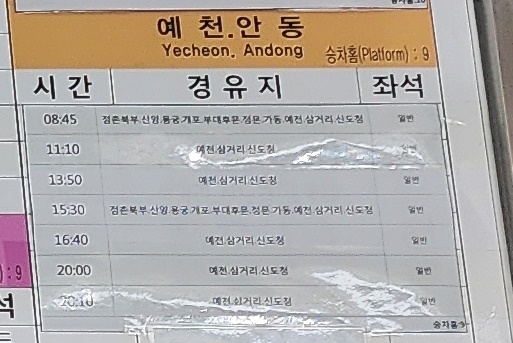 점촌 출발 경주, 포항 방면.