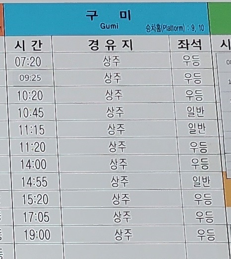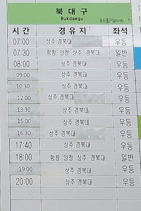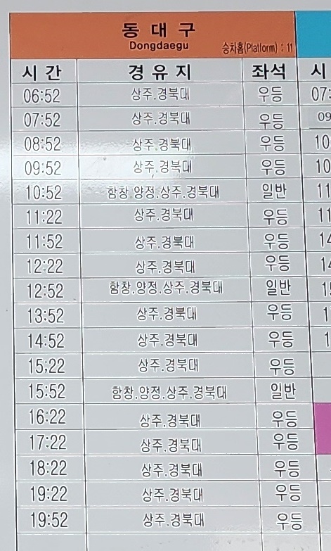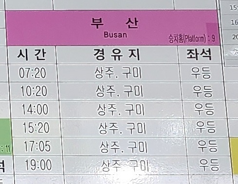 점촌 출발 부산 방면.