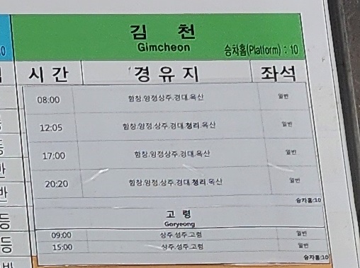 점촌 출발 김천 방면.
