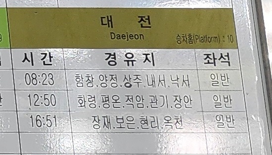 점촌 출발 대전 방면.