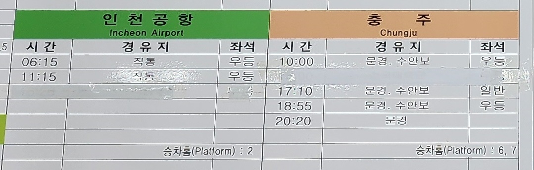 점촌 출발 안산, 인천, 안양, 부천 방면.
