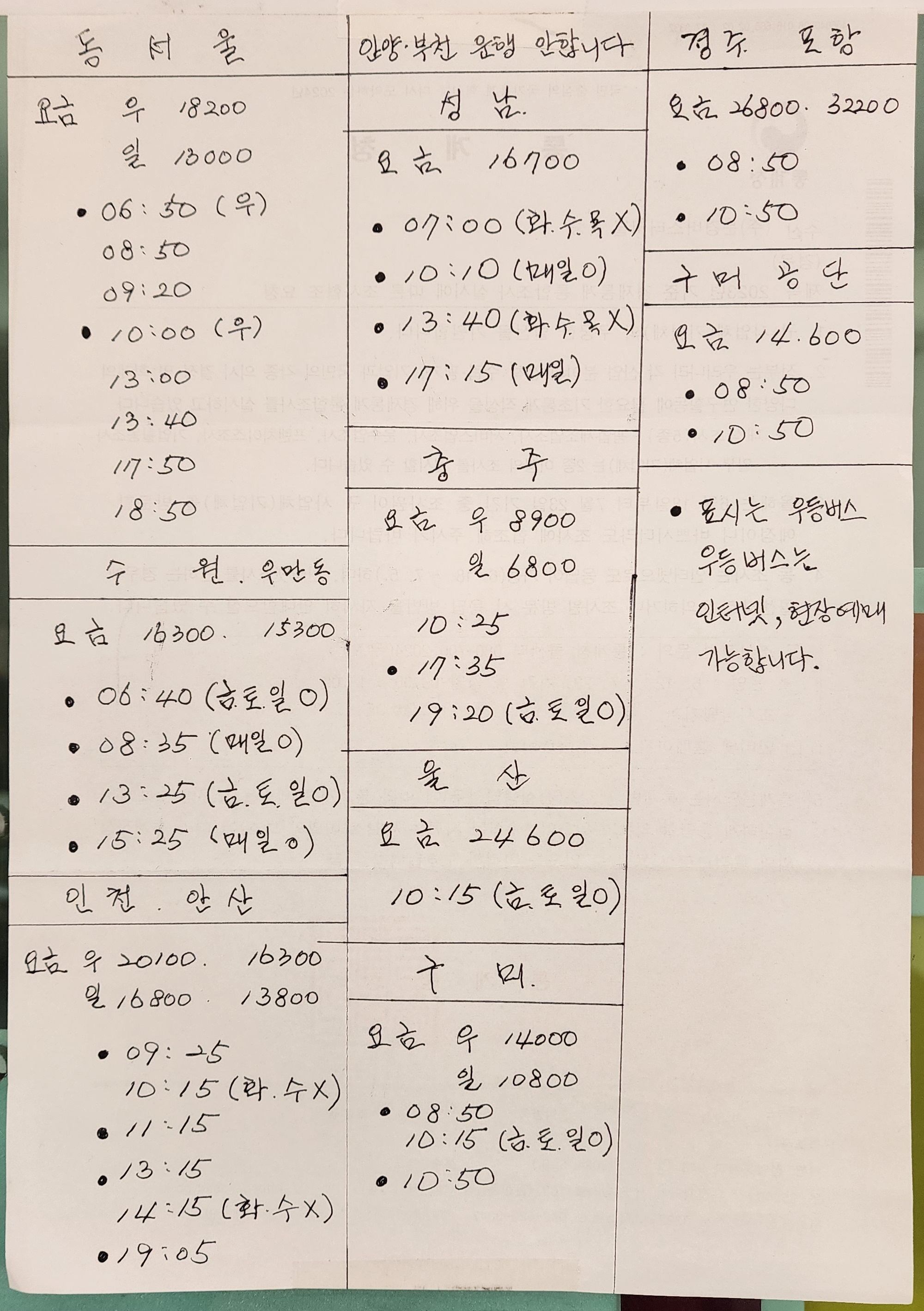 일상이야기/시외버스시간표