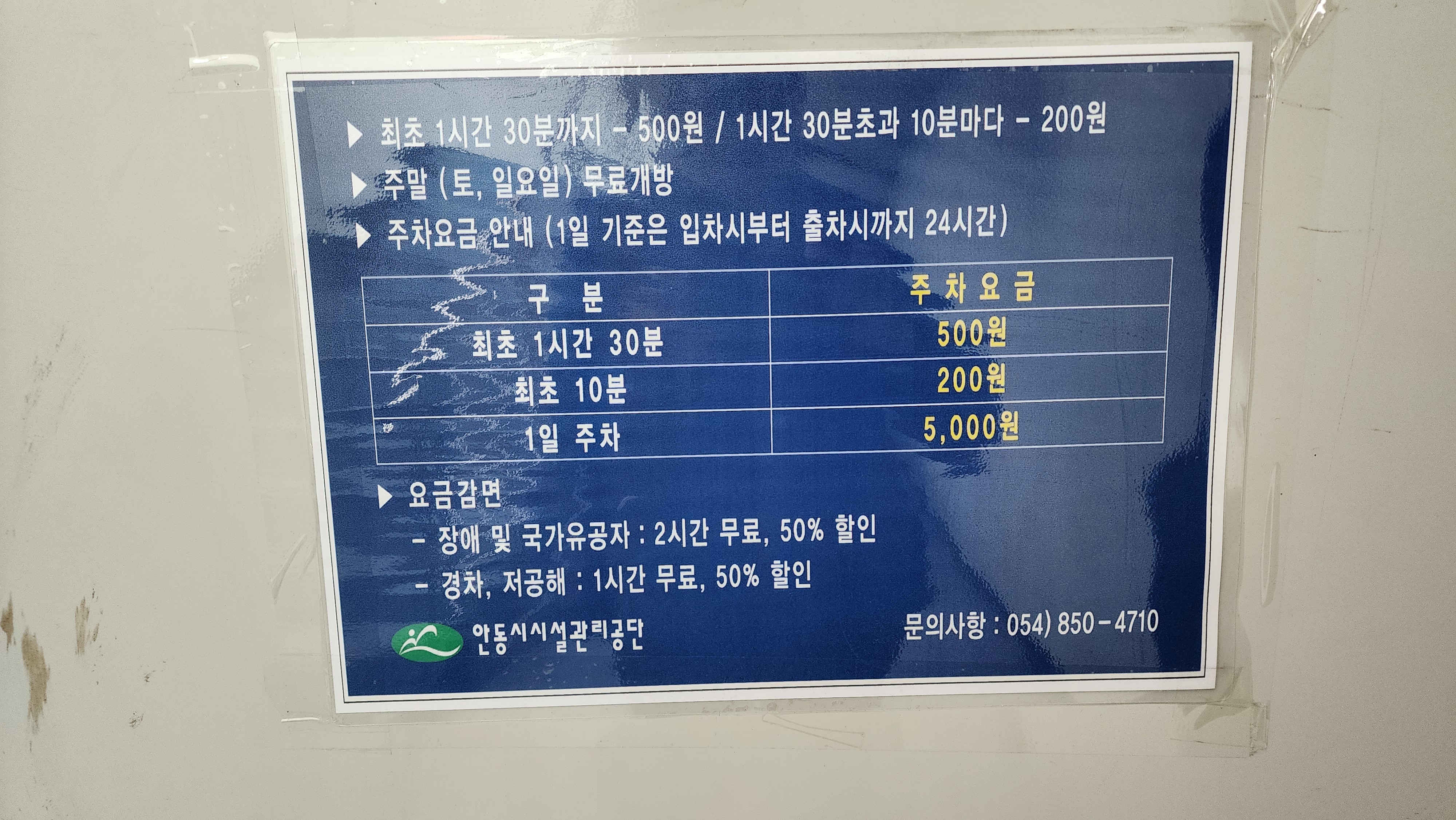 안동버스터미널 공영주차장 요금표