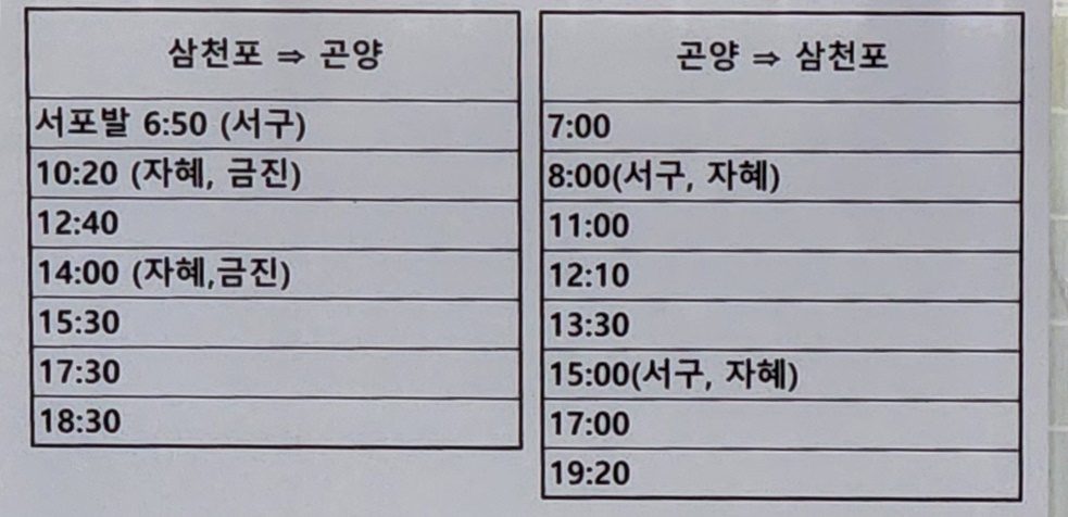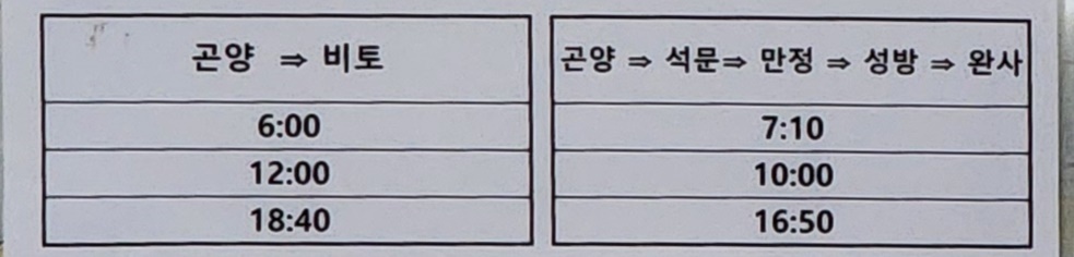 곤양 출발 석문, 만정, 성방, 완사 방면.