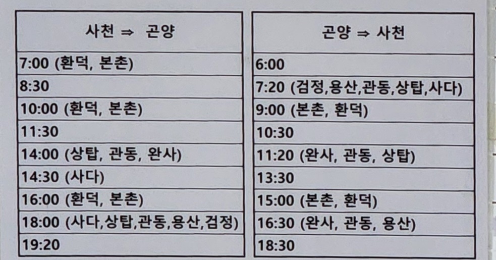 곤양시외버스터미널 시간표