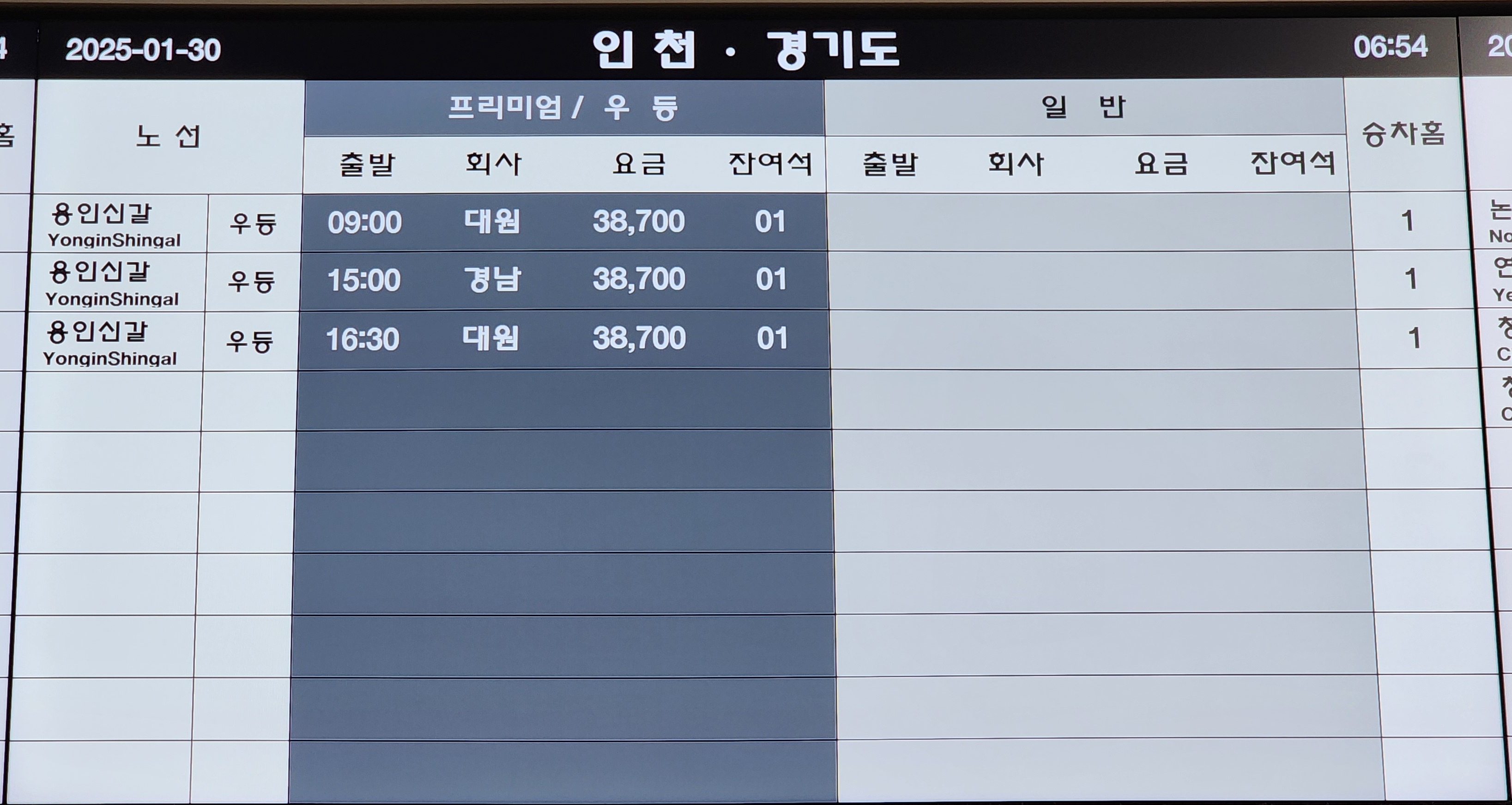부산 출발 인천, 성남, 용인, 용인신갈 방면.