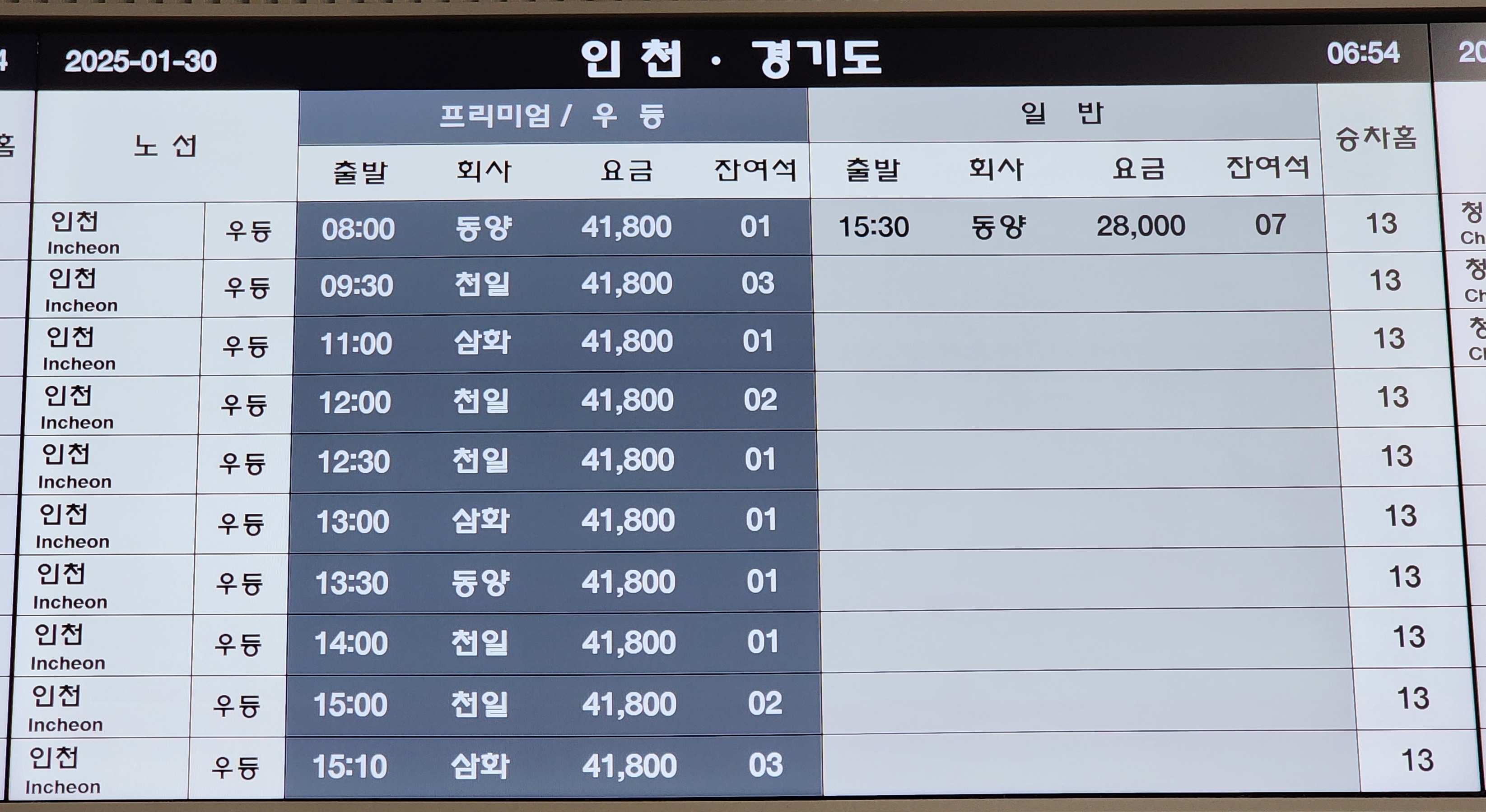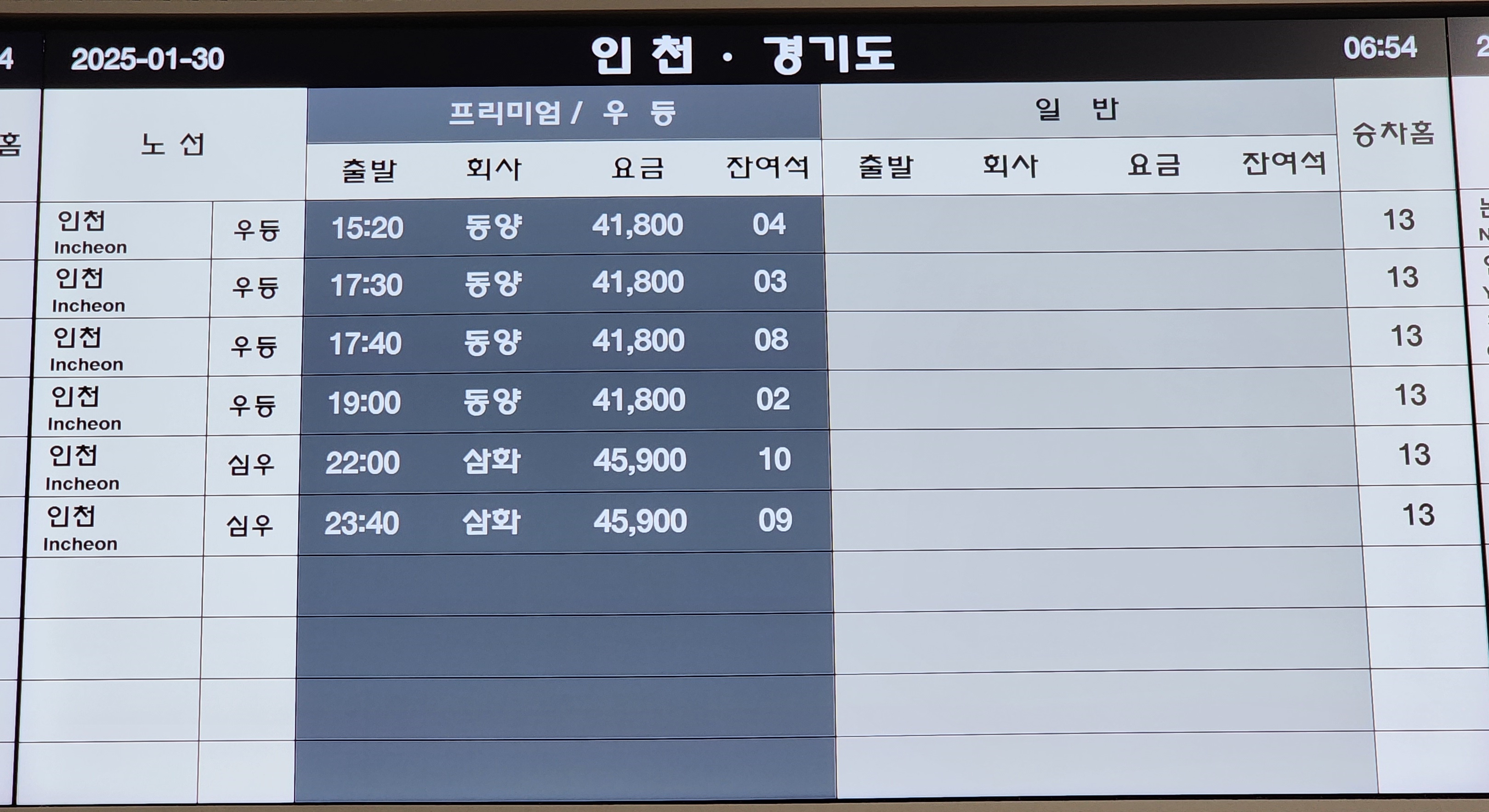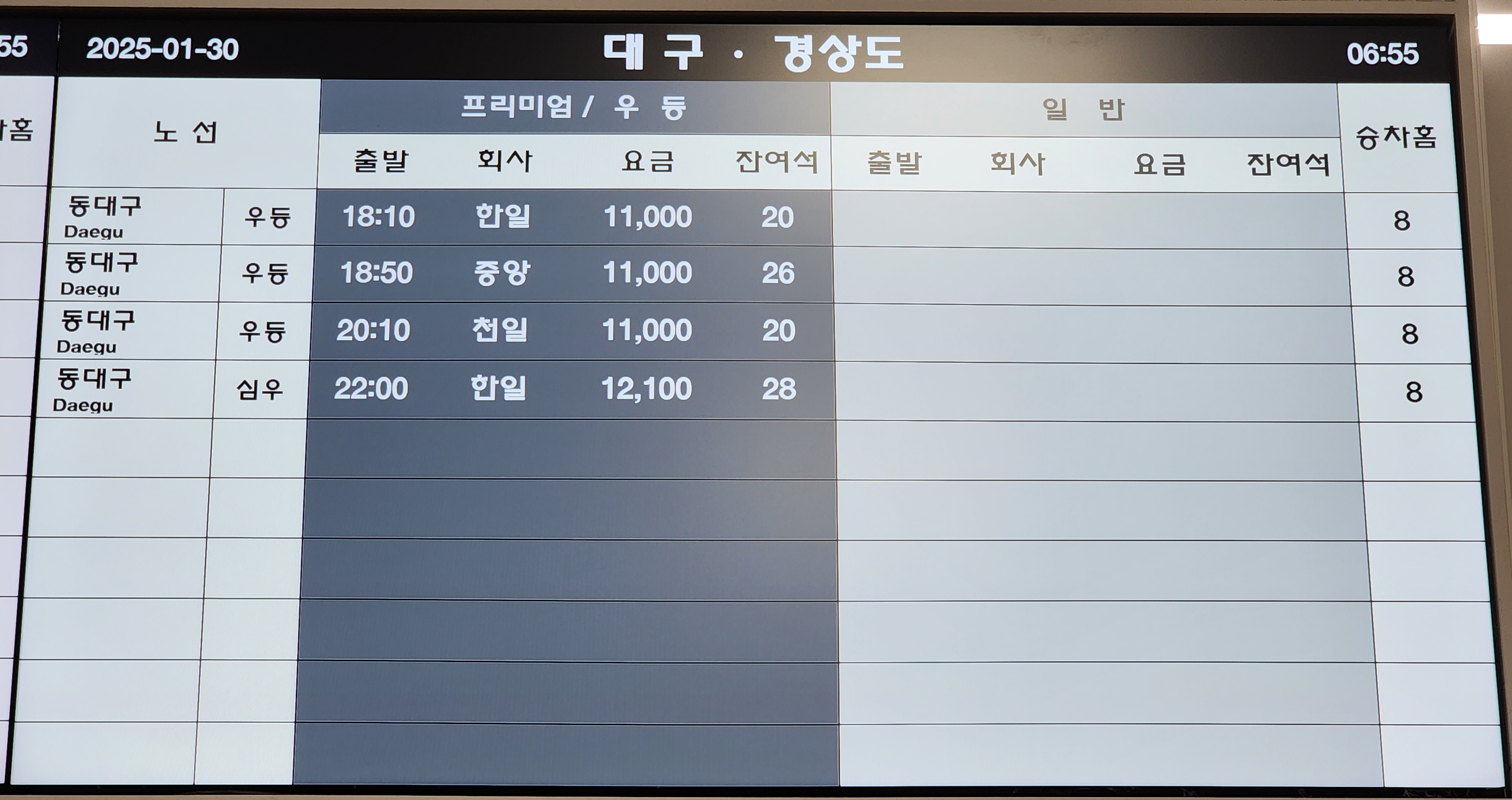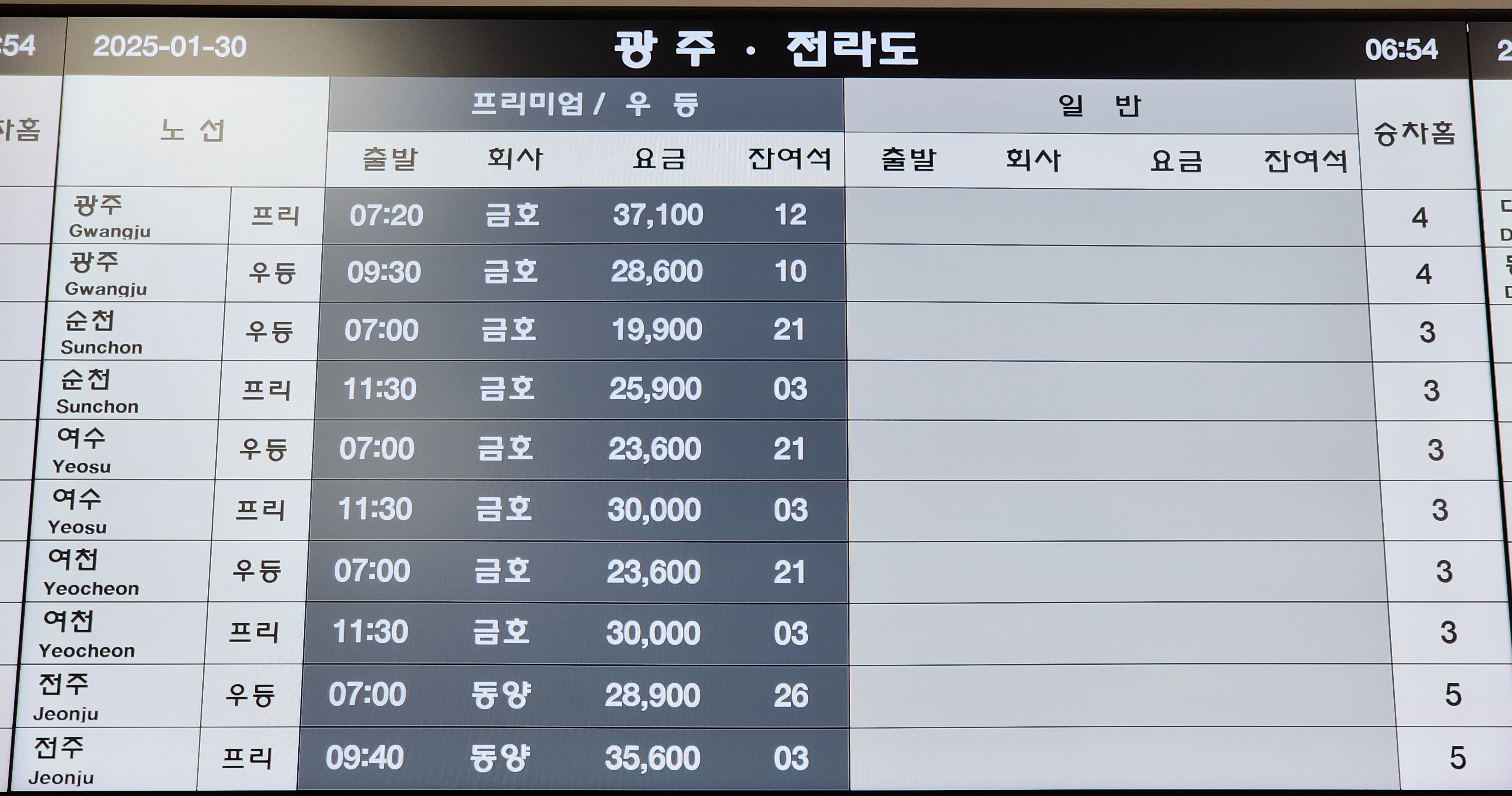 부산 출발 광주, 순천, 여수, 여천, 전주 전라도 방면