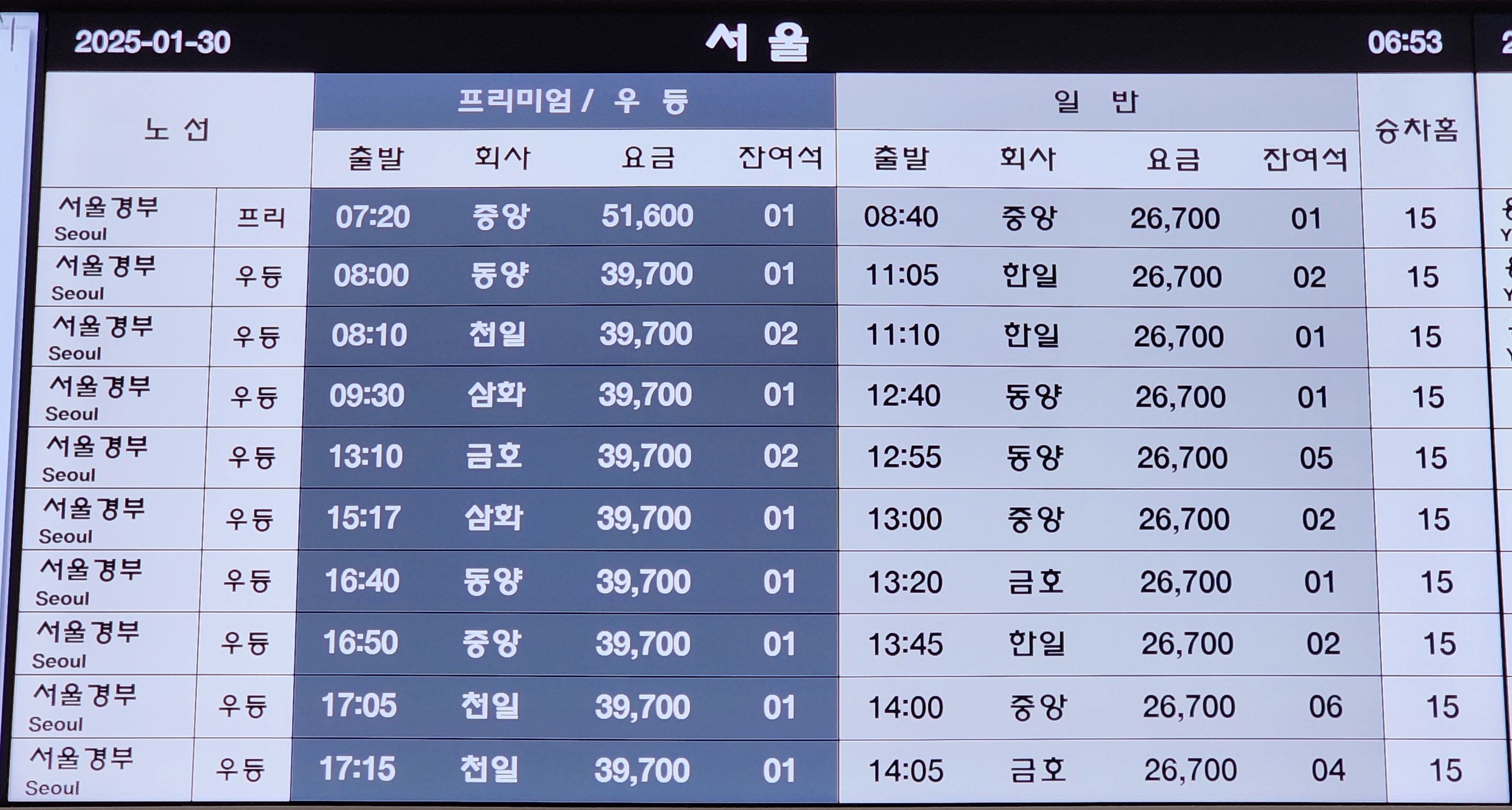 부산고속버스터미널 시간표 부산동부터미널 노포터미널