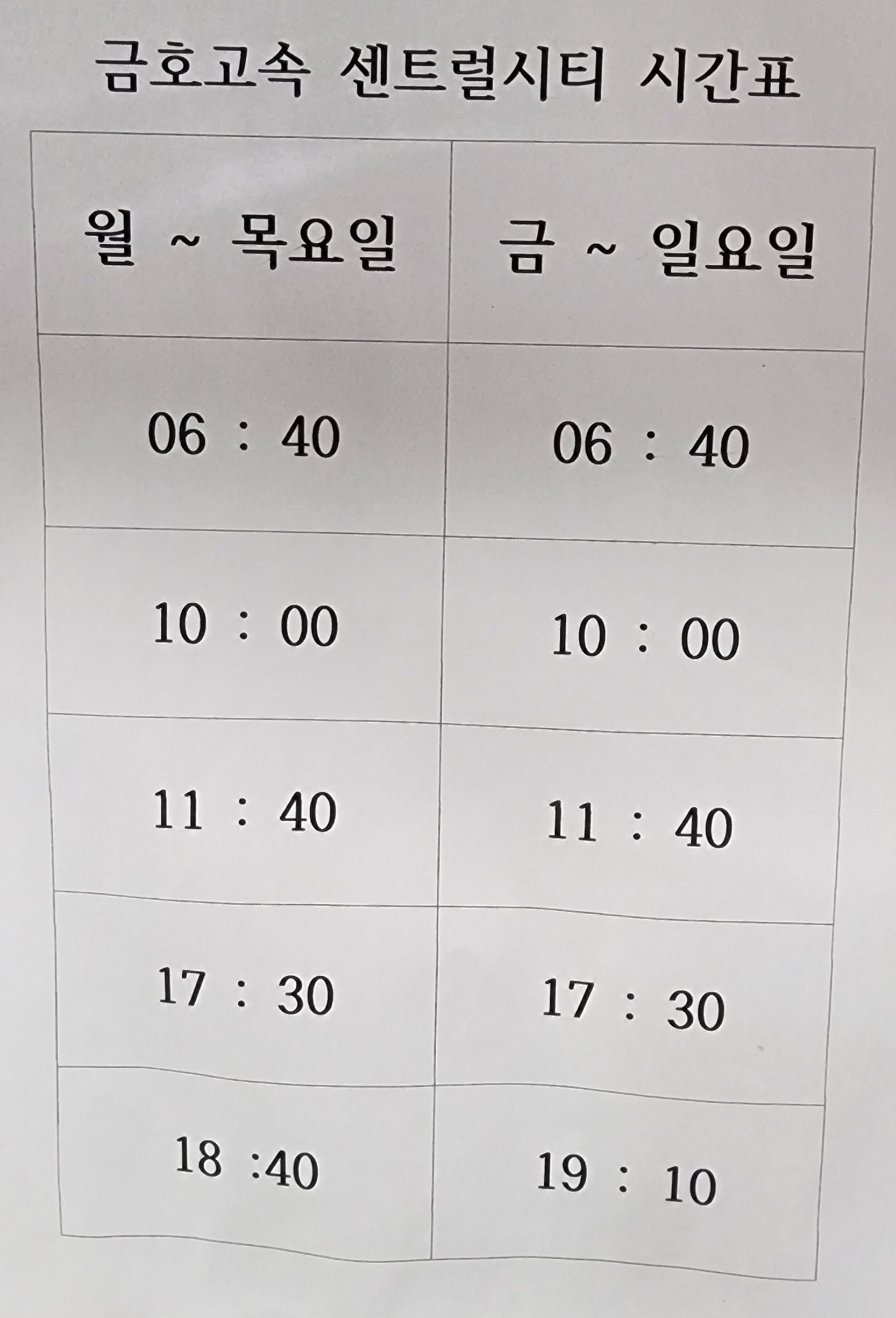 금호고속 센트럴시티 시간표