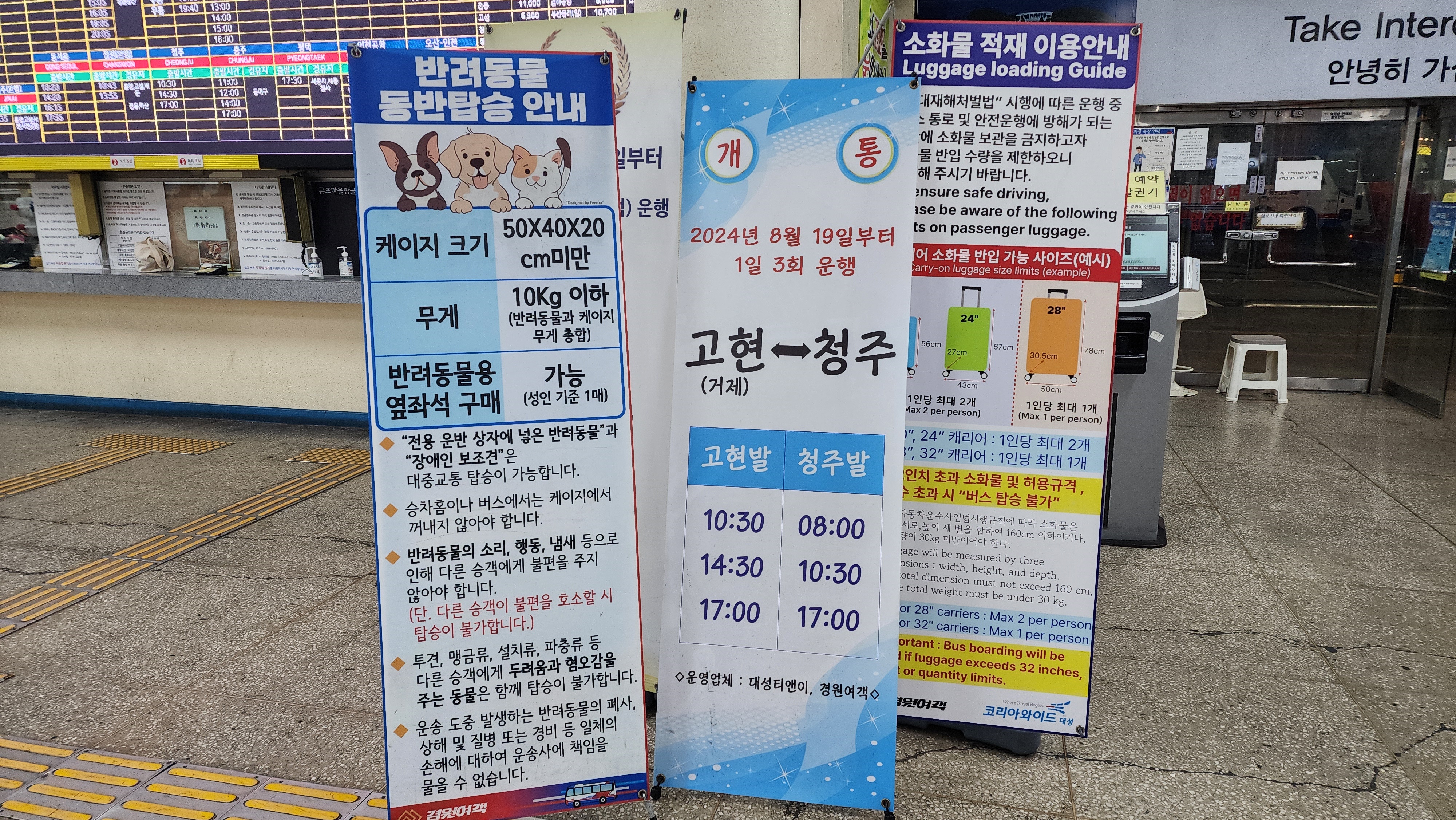 고현 출발 울산, 동대구, 청주, 충주 방면.