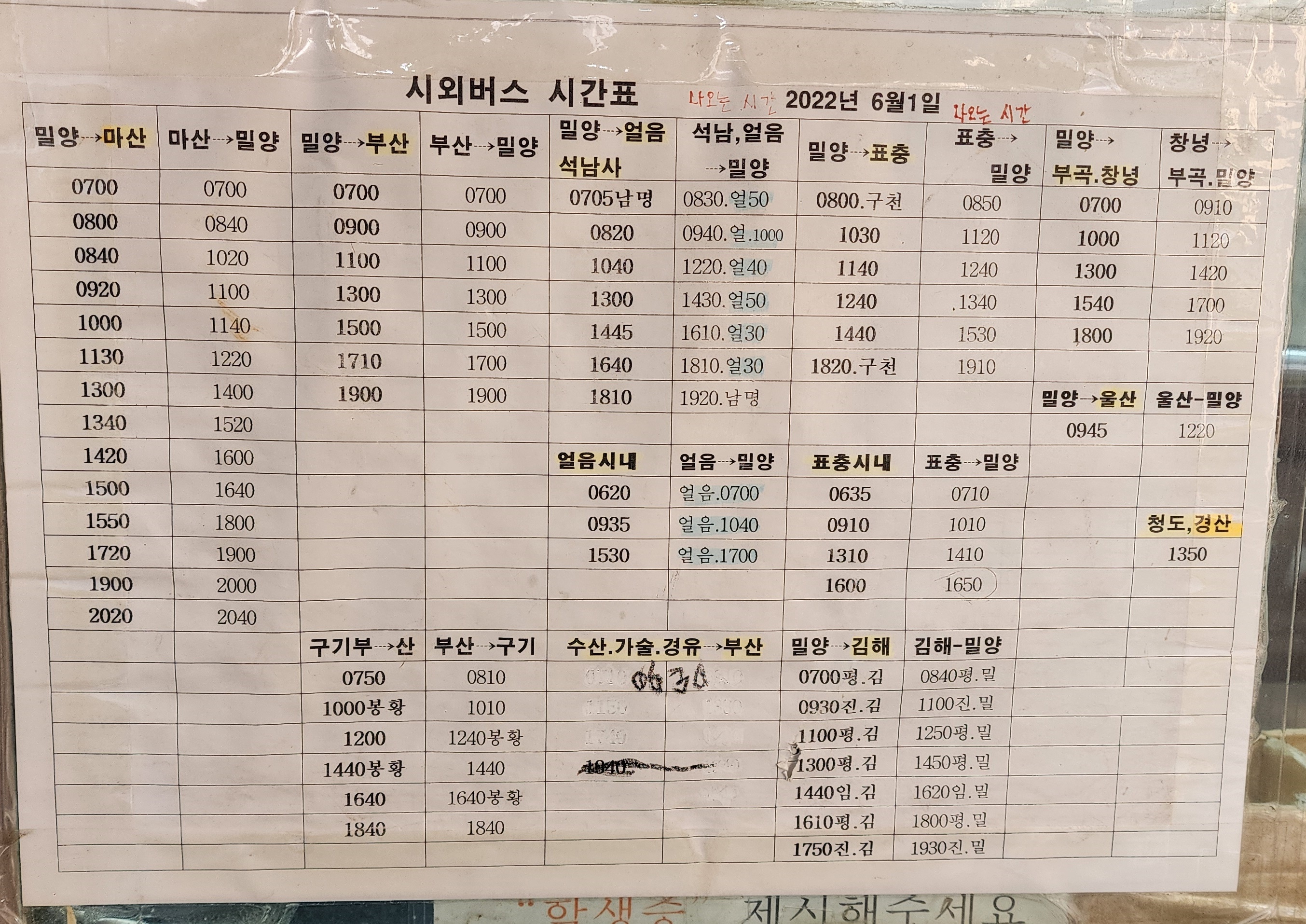 밀양시외버스터미널 시간표