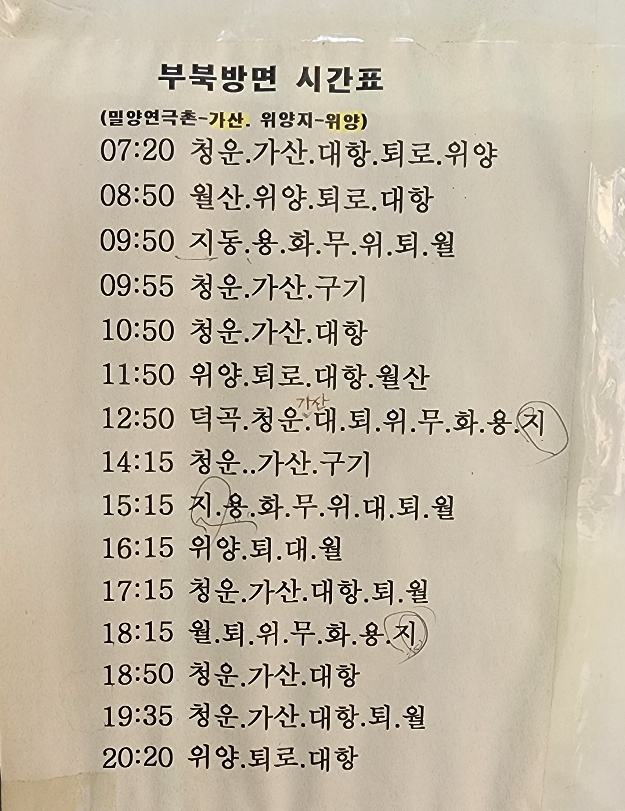부북방면 시간표