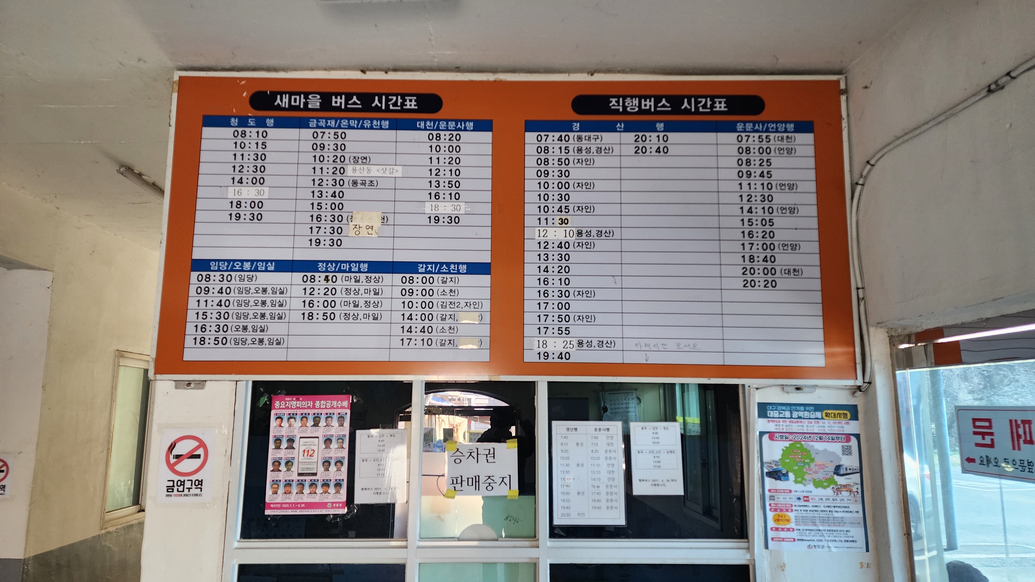 청도 동곡시외버스터미널 시간표