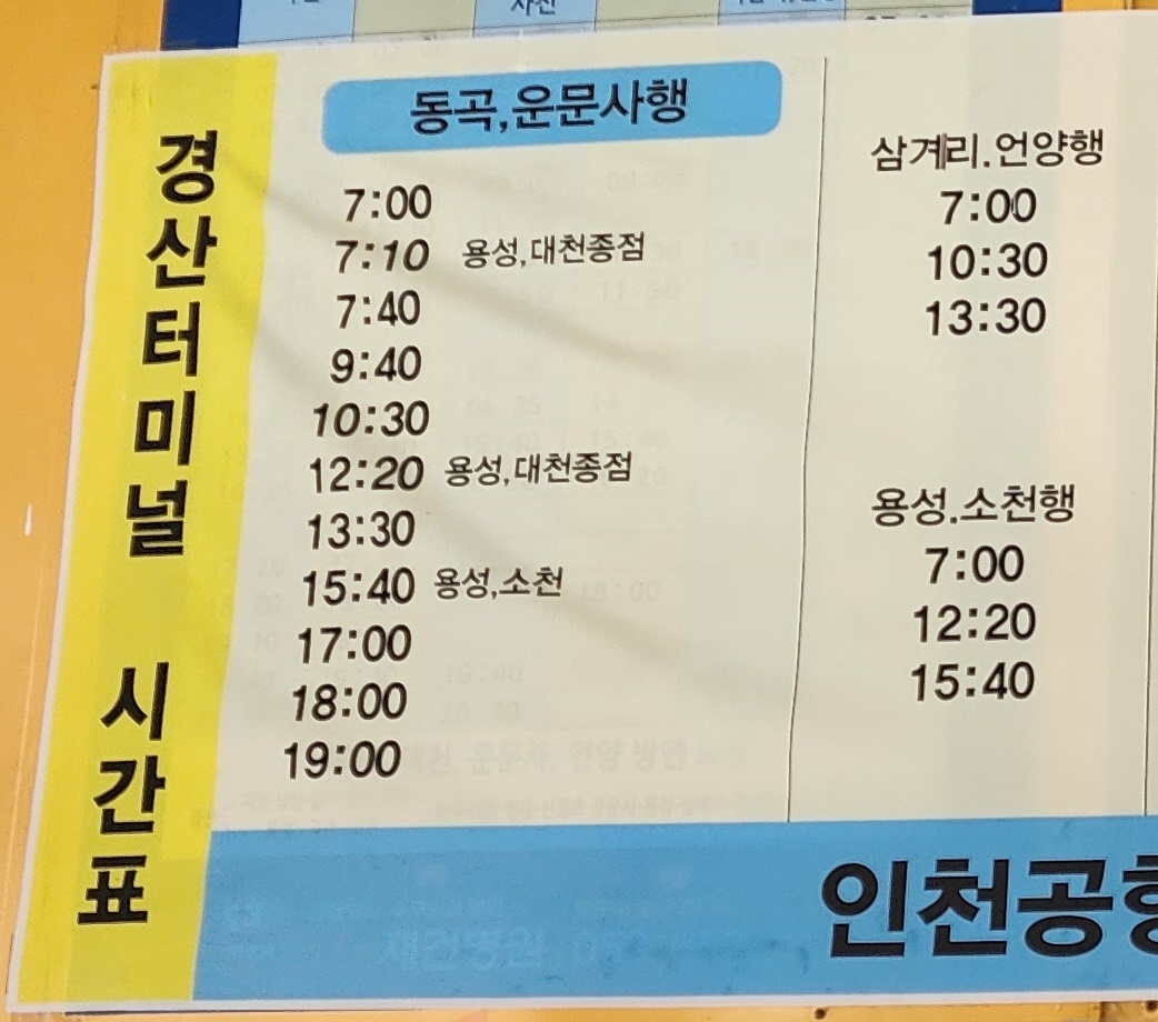 경산 출발 청도, 풍각, 경주, 포항 방면.