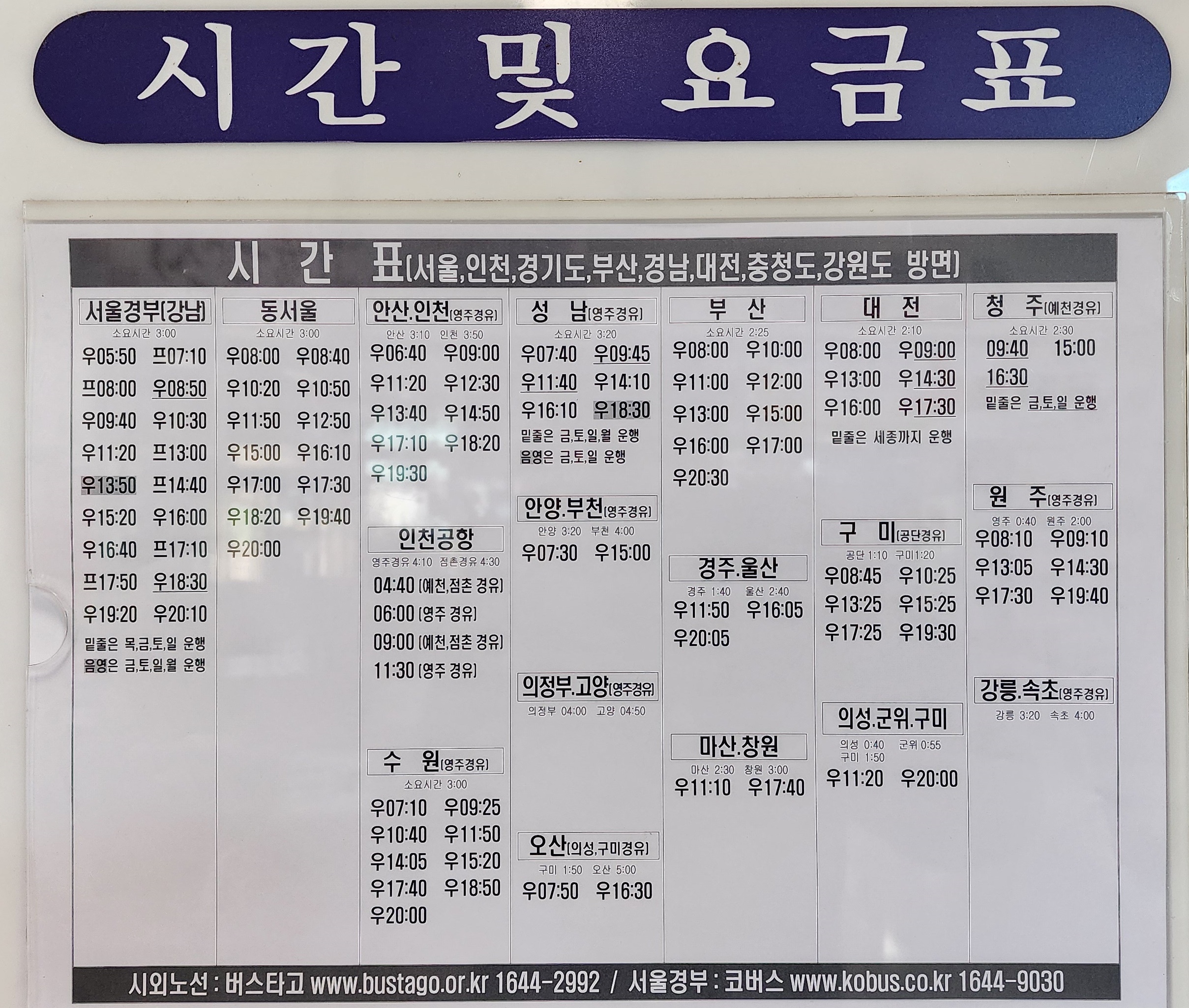 일상이야기/시외버스시간표