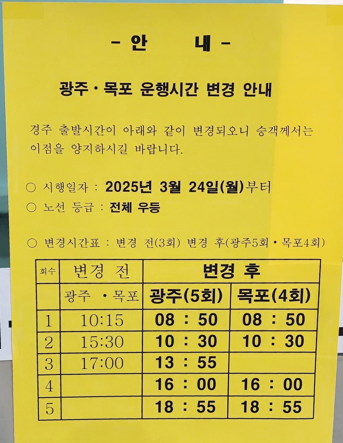 경주 출발 광주, 목포 방면.