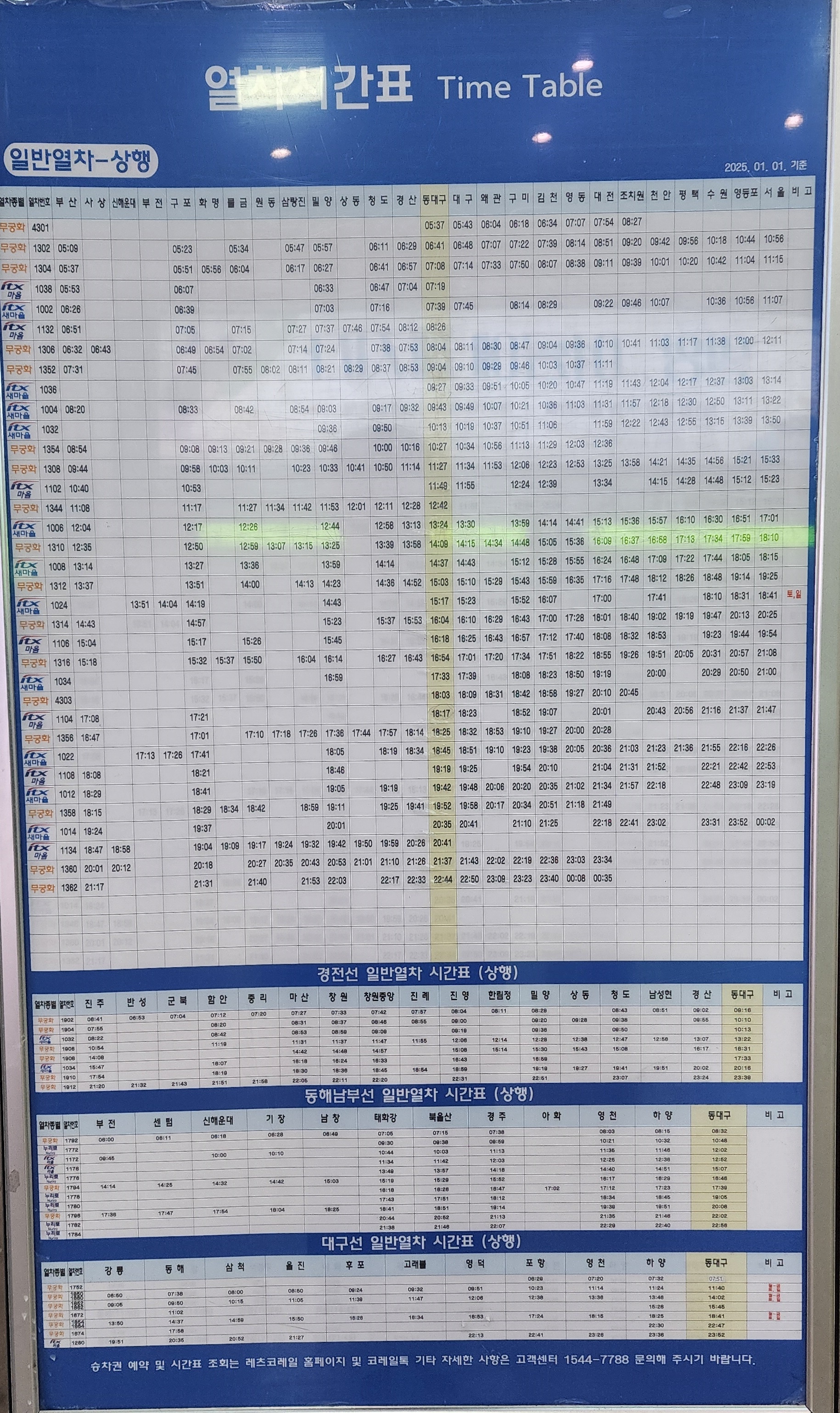 동대구역 일반열차 상행 시간표