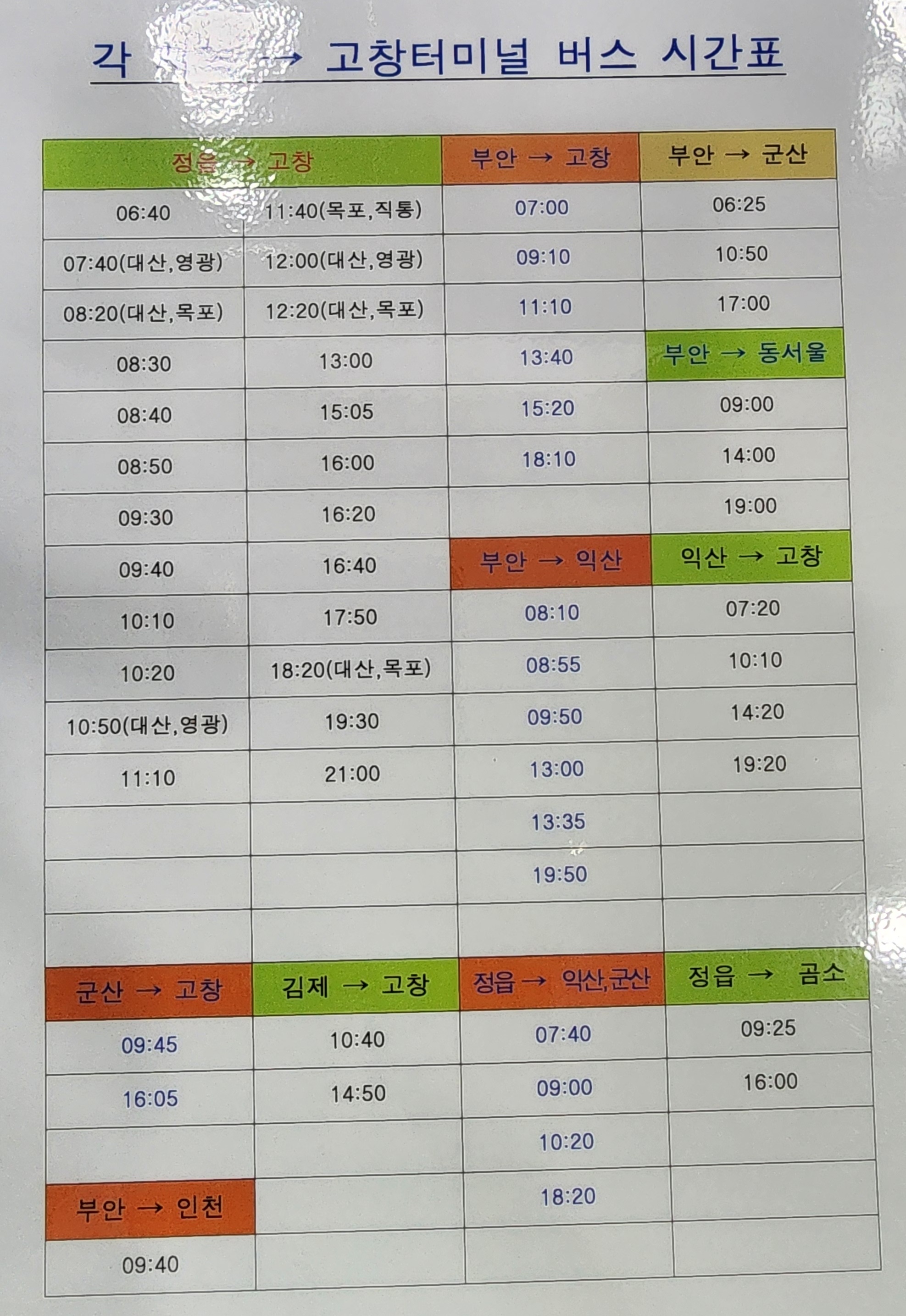 고창시외버스터미널 시간표