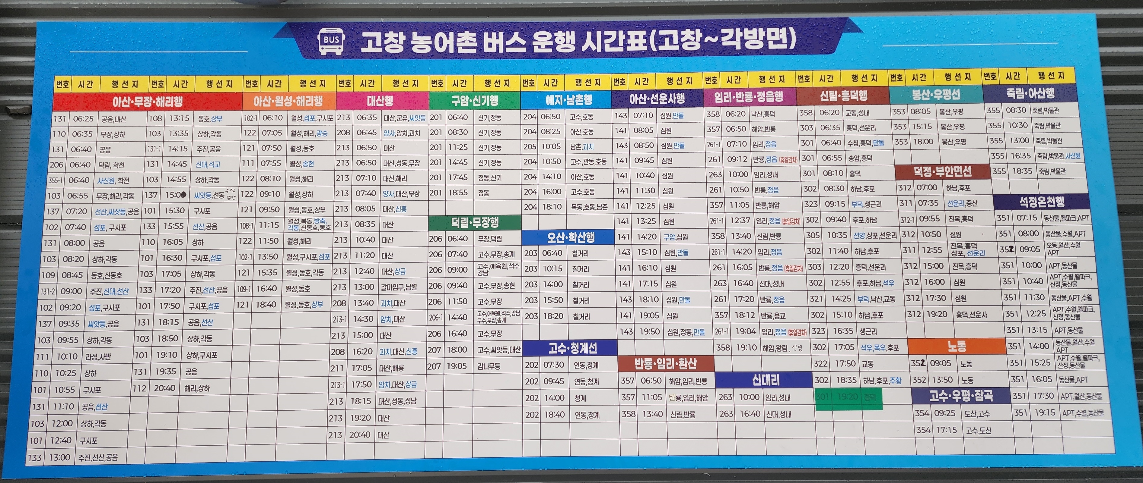 고창 농어촌버스 운행 기간표