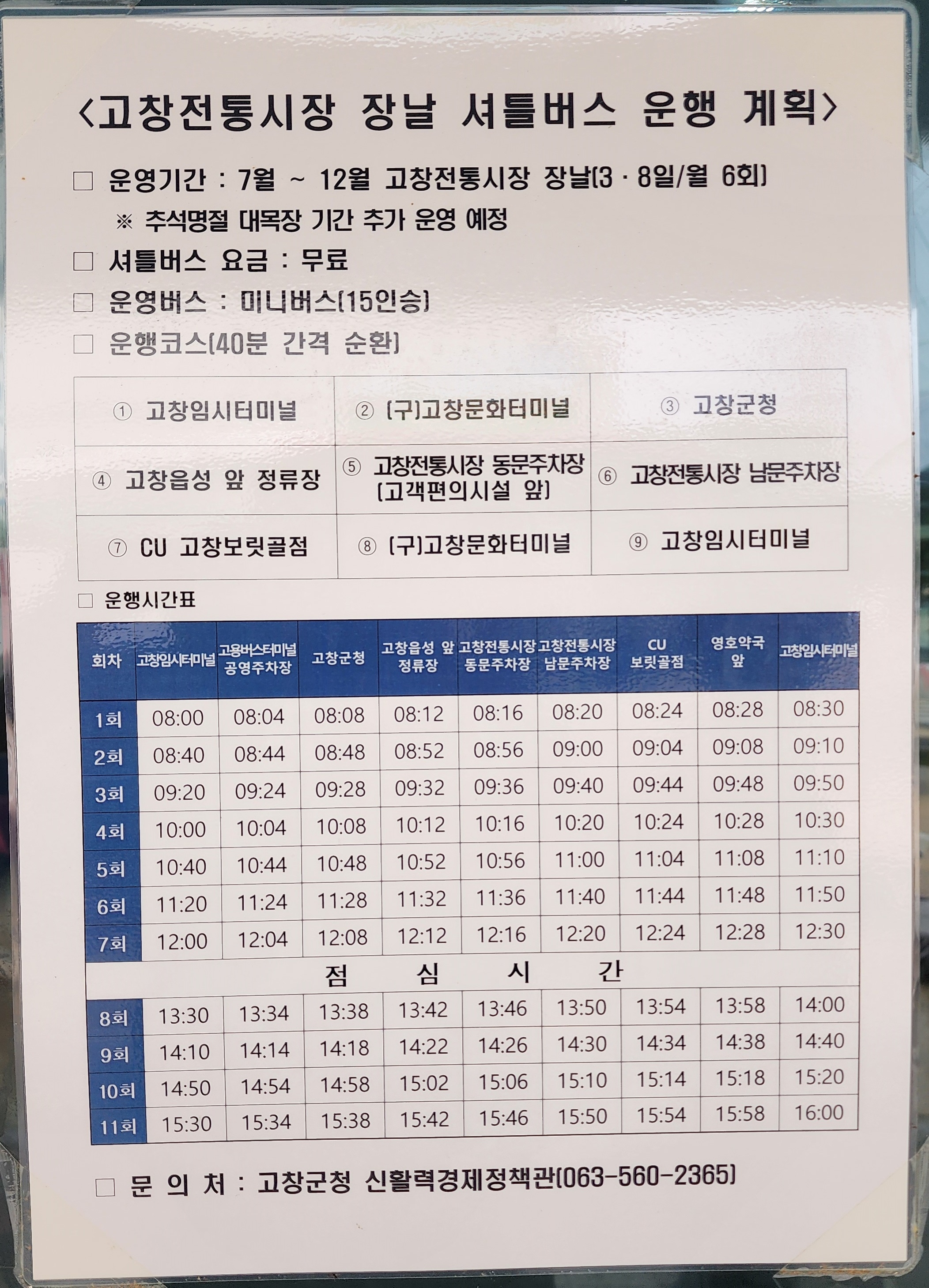 고창터미널 임시 이전에 따른 고창전통시장 셔틀버스 운행