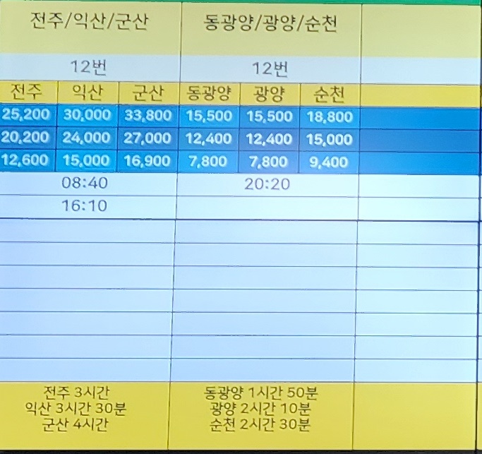 김해 출발 전주, 익산, 군산, 동광양, 광양, 순천 방면.