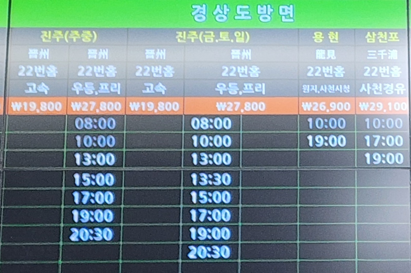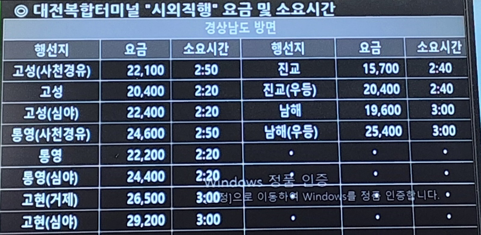 대전 출발 사천, 고성, 통영 ,거제 방면.