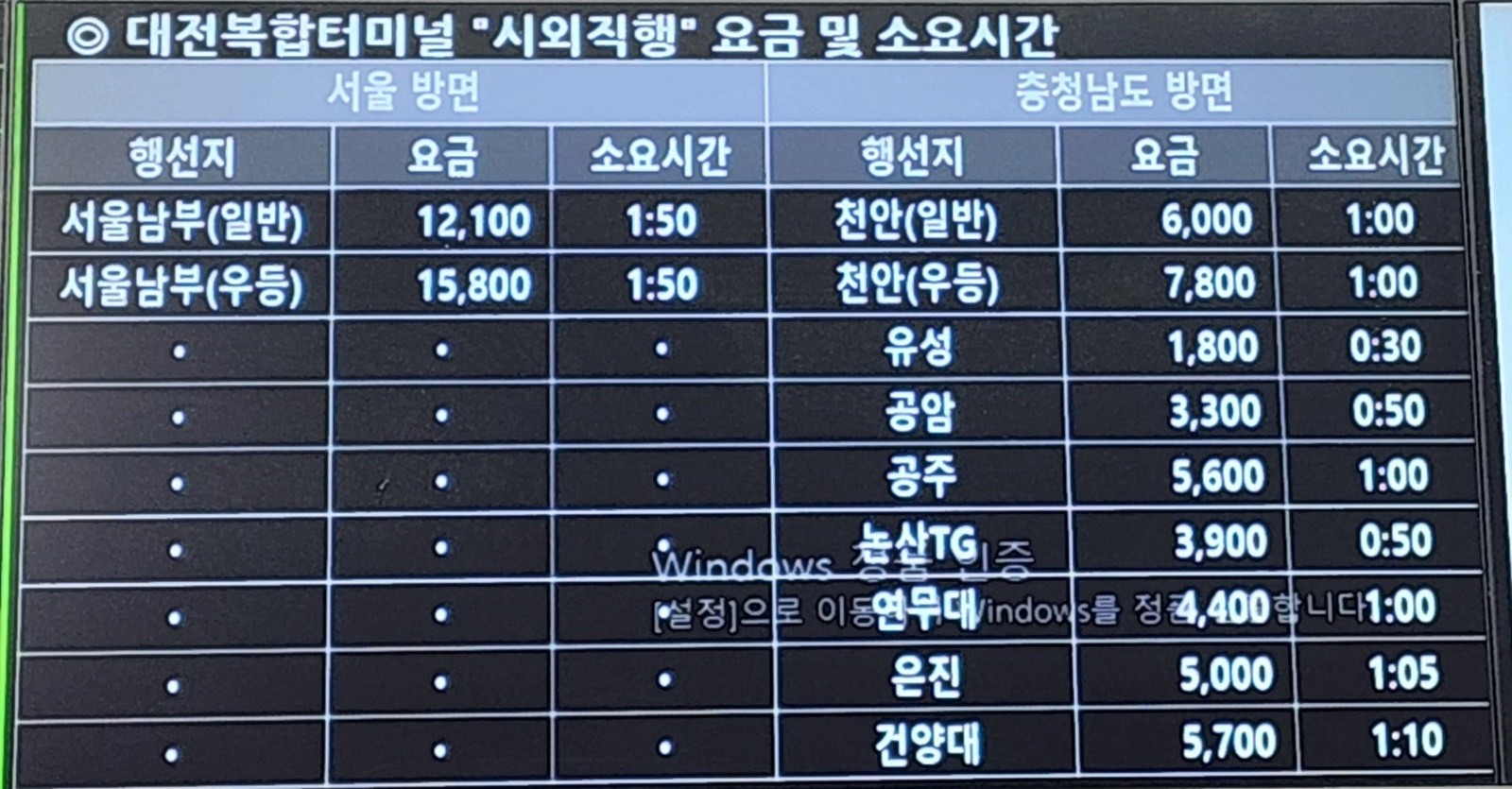 대전 출발 공주, 논산, 금산, 홍성 방면.