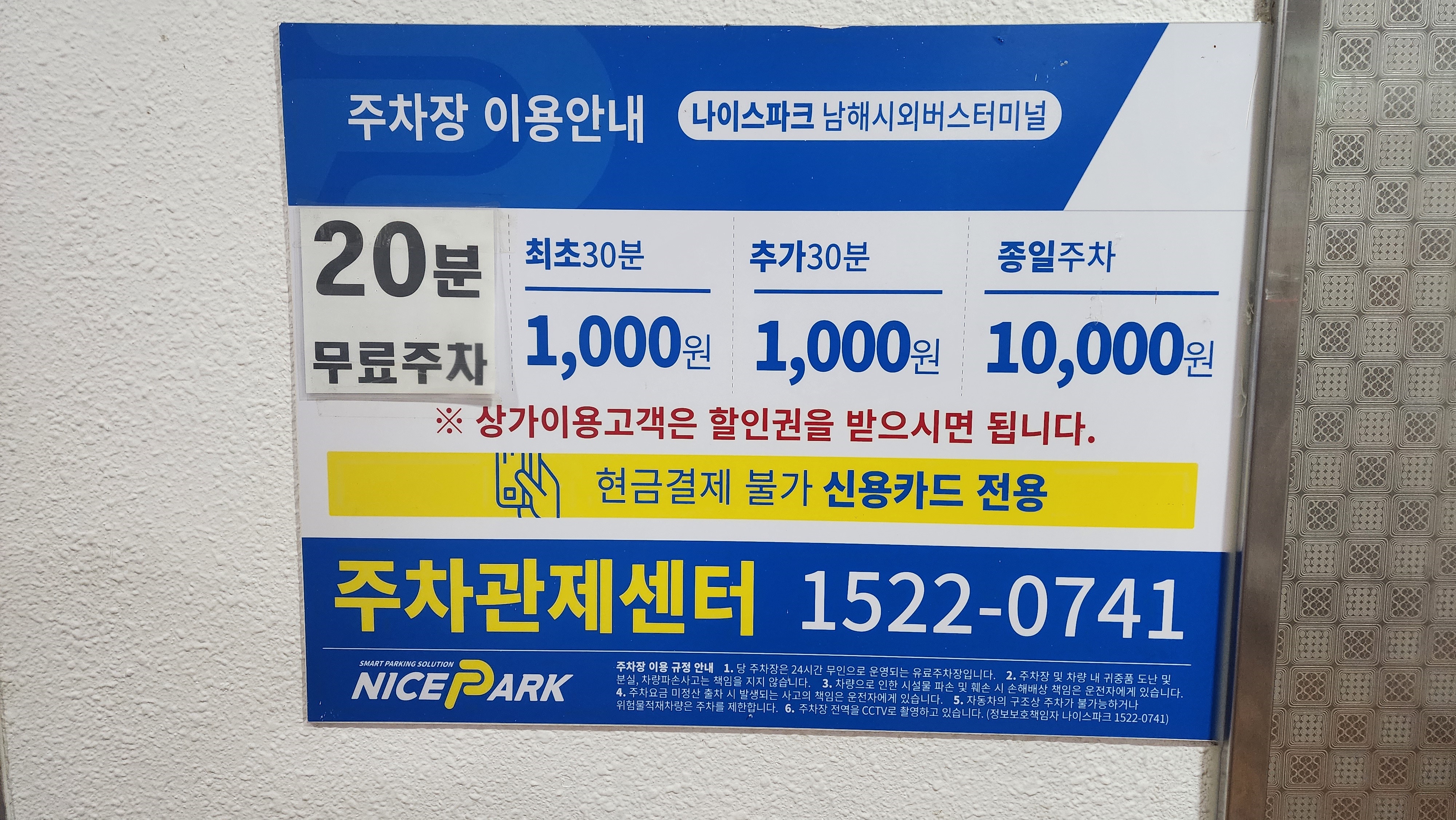 너미널 건물 지하주차장 이용시 주자요금입니다.