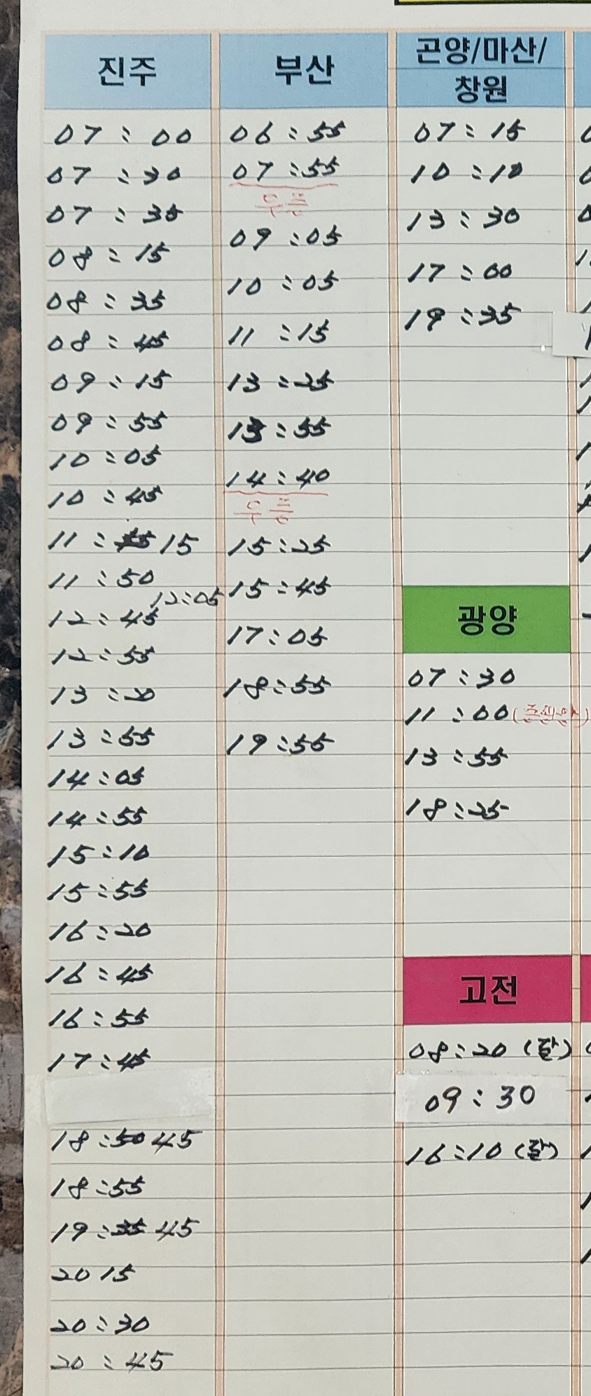 하동 여행의 설렘이 터미널에서의 기다림으로 지치지 않도록, 미리 시간표를 체크하시는 센스! 다들 잊지 마세요.