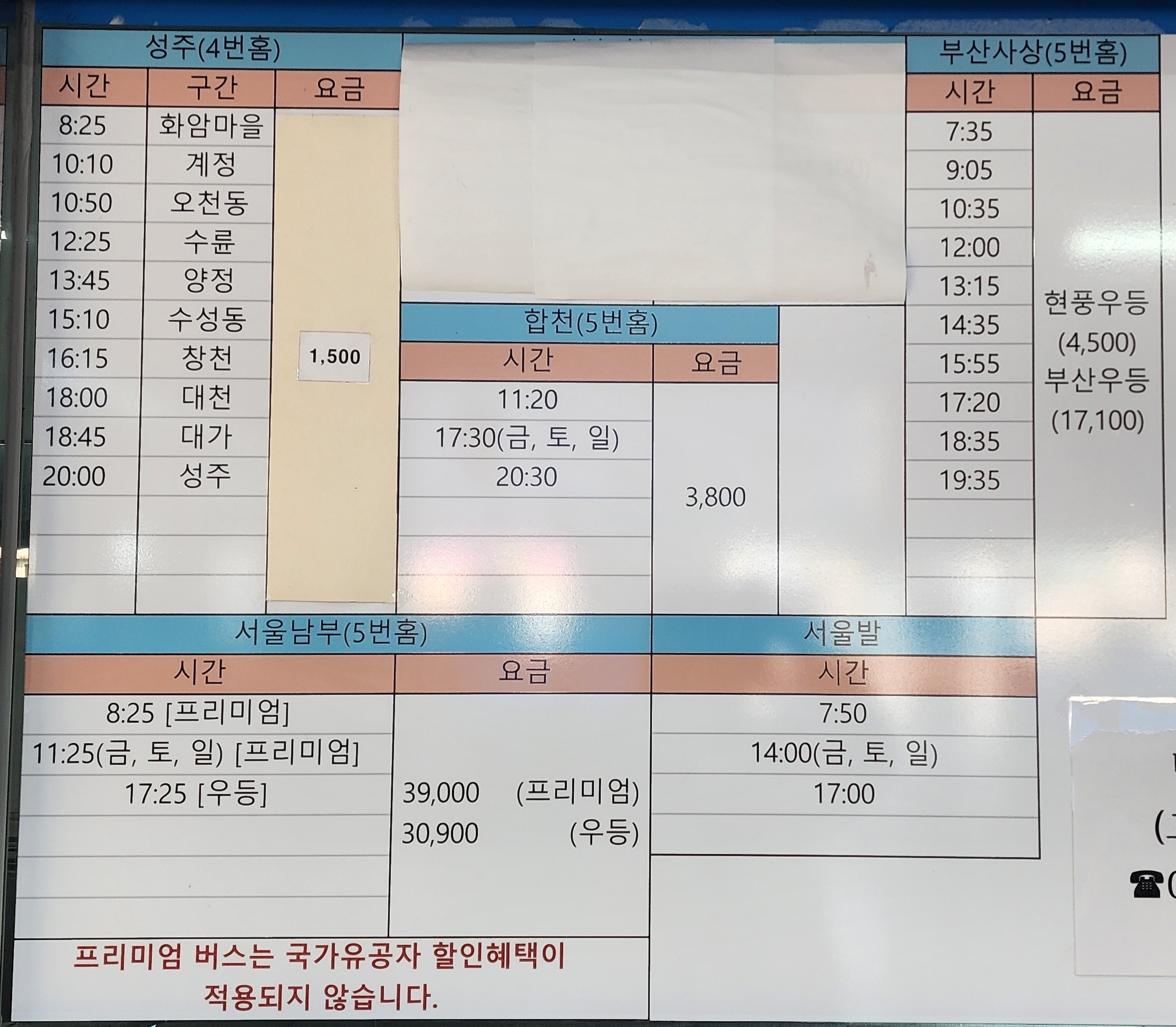 3. 수도권 방면: 서울남부터미널 (하루 운행 횟수가 제한적이니 사전 확인 필수)