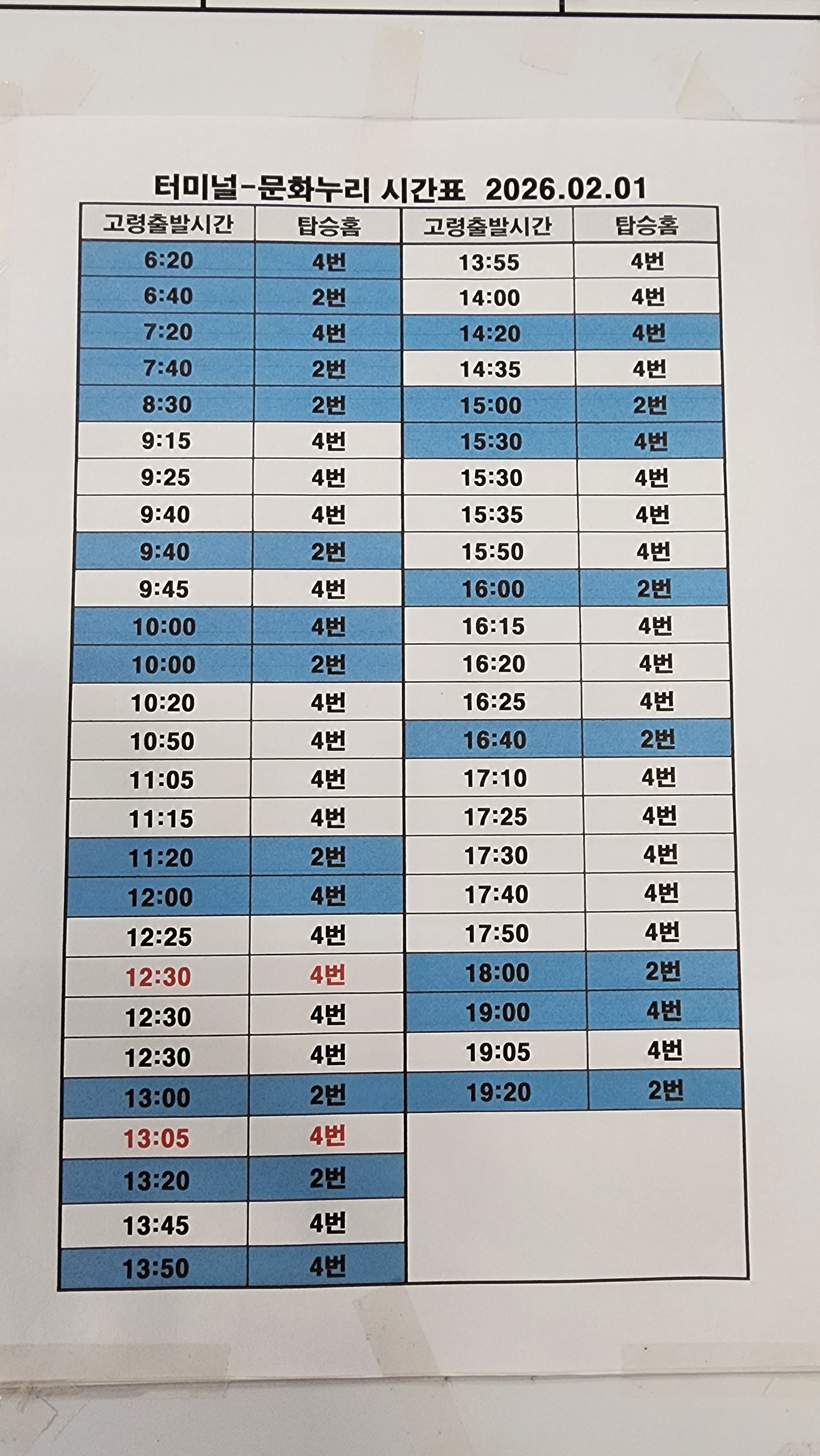 정확한 출발 시간은 현장 사정이나 도로 상황에 따라 지연될 수 있으니 5~10분 전 미리 터미널에 도착하시는 것을 권장합니다.