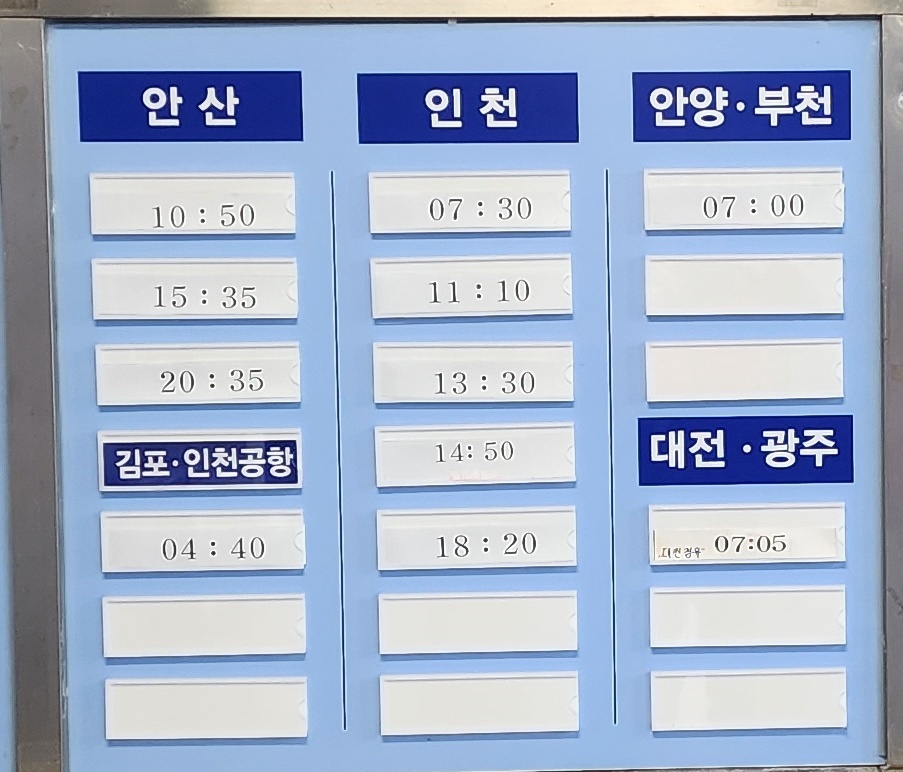| 수원 / 안산 / 인천 | 일 3~5회 운행 (장거리 노선은 사전 확인 필수) |