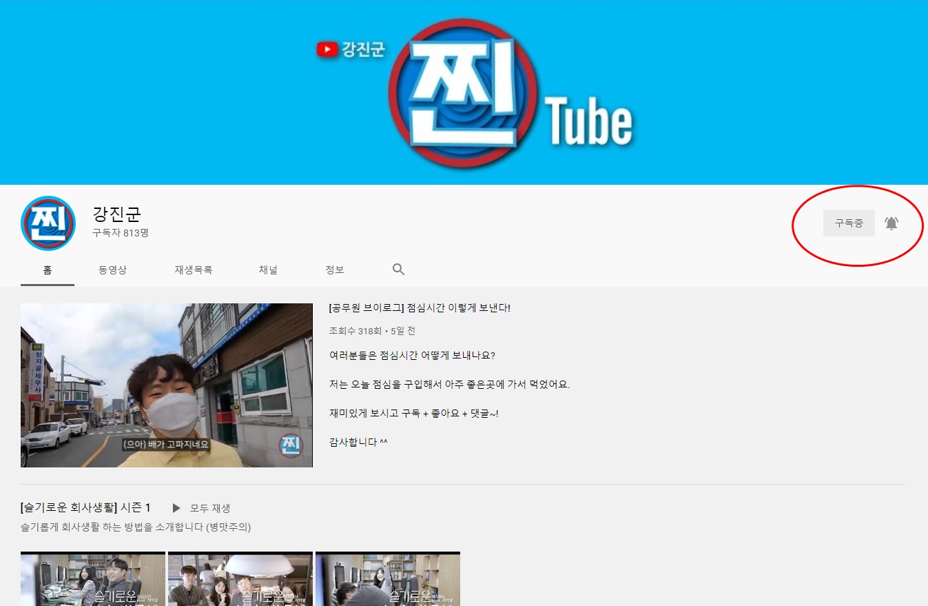 강진 유튜브 랜선으로 떠나는 슬기로운 강진여행 강진 유튜브 랜선으로 떠나는 슬기로운 강진여행 ( - 강진 유튜브 구독과 함께 유튜브를 통한 관광지 여행) 남도답사 일번지 강진여행을 준비하다가 최근 전국적인 코로나 19 재확산 여파로 인하여 랜선 여행을 떠나봅니다. 강진 가볼만한곳으로 다산 박물관, 고려청자박물관, 한국 민화 뮤지엄, 다산초당, 영랑생가, 백련사, 강진만 생태공원, 가우도, 전라병영성, 석문공원, 라량미항, 남미륵사, 강진다원, 백운동 정원, 무위사 사의재 등등이 있습니다. 여기에 적혀있는 장소를 하룻만에 돌아보기는 힘들지만 코로나 19시대에 걸맞은 랜선 여행으로 함께 여행을 떠나보아요 먼저 유튜브로 들어가서 강진군을 검색합니다. 그러면 강진군이 겸색결과로 나오는데 소개글이 재미있습니다. 강진은 가수가 아입니다. 강진은 지진이 아입니다.. 국내여행/전라남도 2020.07.28