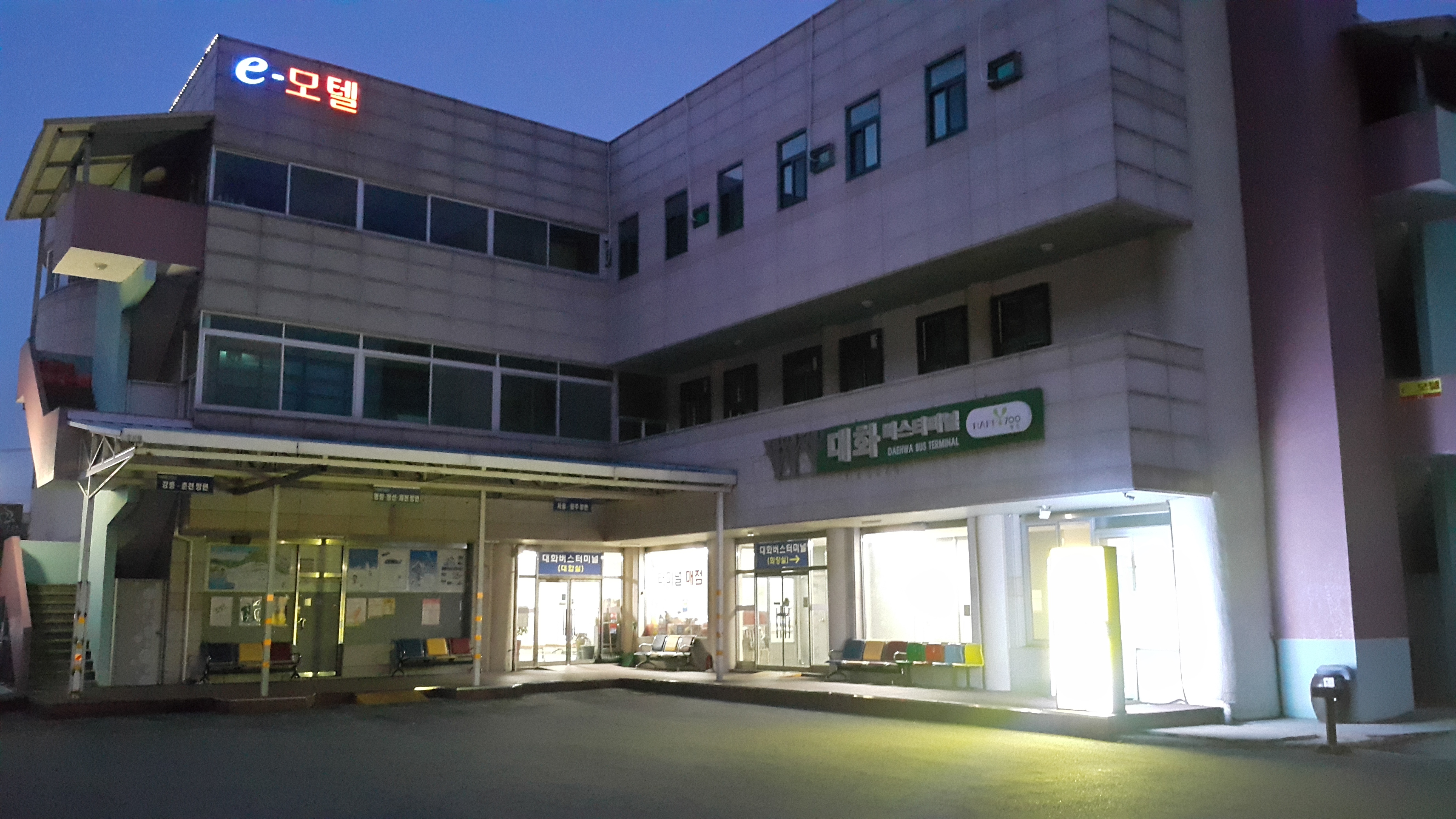 대화시외버스터미널 시간표 강원도 평창여행 워크뷰 대화시외버스터미널 입구 대화시외버스터미널 내부 모습 대화 출발 동서울, 원주, 강릉, 영월, 정선, 꿈의대화 여행 안내도 실내에 책이 구비되어 있다. 더위사냥 캠핑파크 안내도 대화시외버스터미널 대합실 외부 모습 건너편에 멋진 불빛이 보여 가까이 가보았다. 멋진 불길이 만들어져 있다. 이 길은 효석문학 100리길 제3구간에 속한다. 대화버스터미널 전화번호 :033-333-2063 강원 평창군 대화면 대화리 1012-7