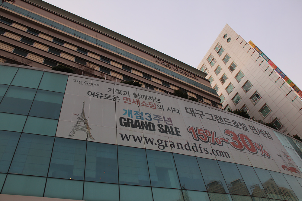 대구 그랜드호텔 무궁화가 5개 대구지하철 범어역에 내리면 근처에 있는 대구그랜드호텔 대구그랜드호텔 면세점에서는 개점 3주년 기념으로 15%~30% 그랜드세일을 하고 있습니다. 출입구는 대형회전문이 있어 이곳을 이용해서 들어가면 편리하며 무궁화가 무려 5개가 붙어 있는 호텔입니다. 그리고 해태조각상이 이곳 그랜드호텔을 지키고 있는것 같습니다. 1층 그랜드호텔 로비에서 바라 본 출입구의 모습 중앙이 대형 회전문이고 양옆으로 또 다른 출입문이 있습니다. 1층에는 스타벅스가 입점해 있는데요 그랜드호텔의 주차장을 이용할수 있으니 많은 사람이 편리하게 그랜드호텔 스타벅스를 찾는것 같습니다. 1층 로비에는 쇼파가 준비되어 있으며 후론트에는 제목을 입은 직원이 손님을 친절하게 맞이합니다. 그랜드 호텔 면세점 홍보하는 ..
